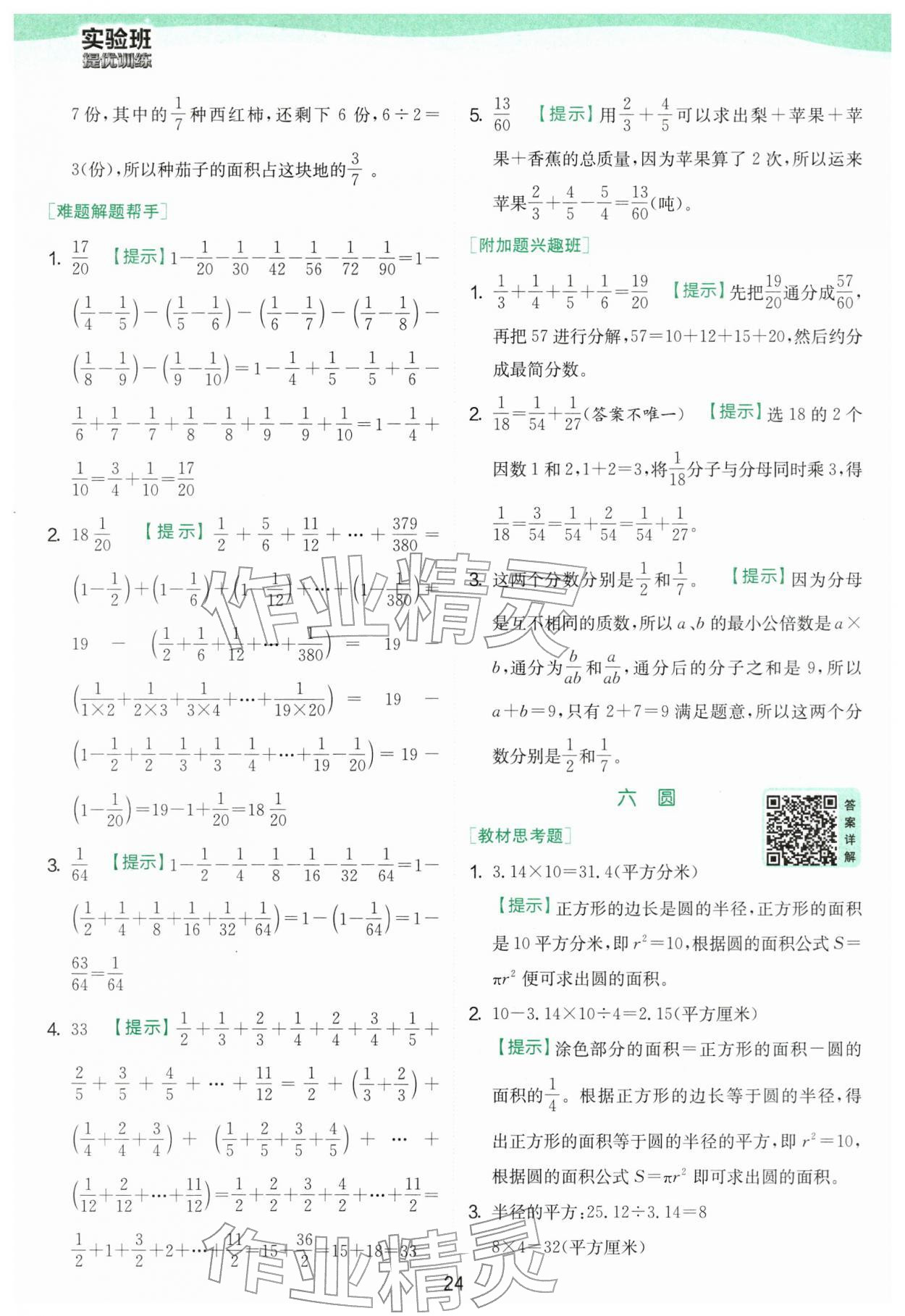 2026年实验班提优训练五年级数学下册苏教版参考答案第72页