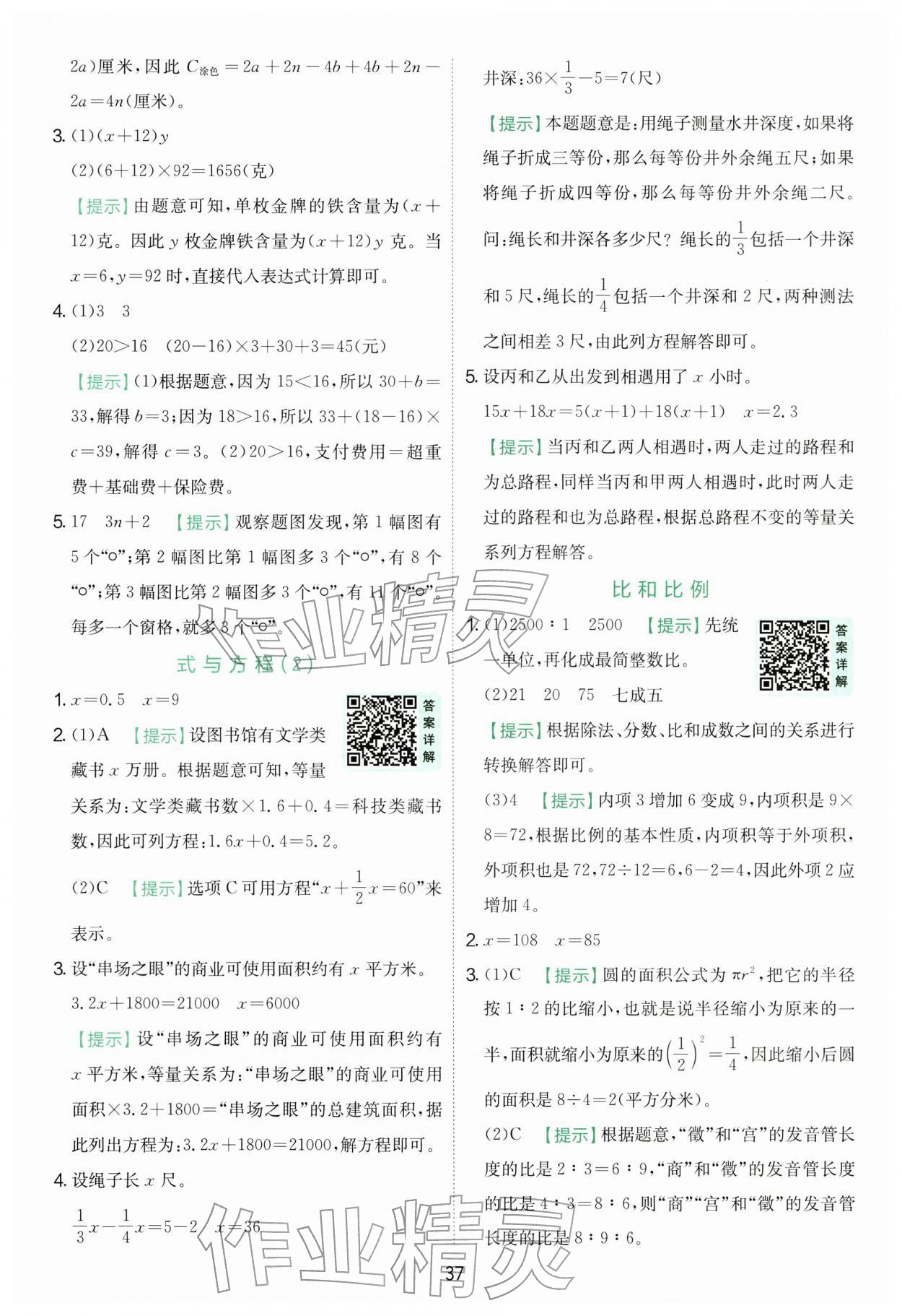2026年实验班提优训练六年级数学下册苏教版第37页
