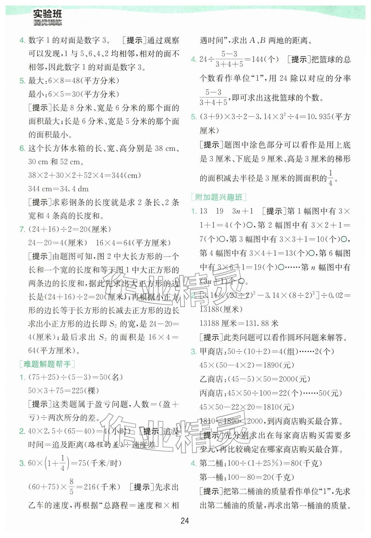 实验班提优训练答案
