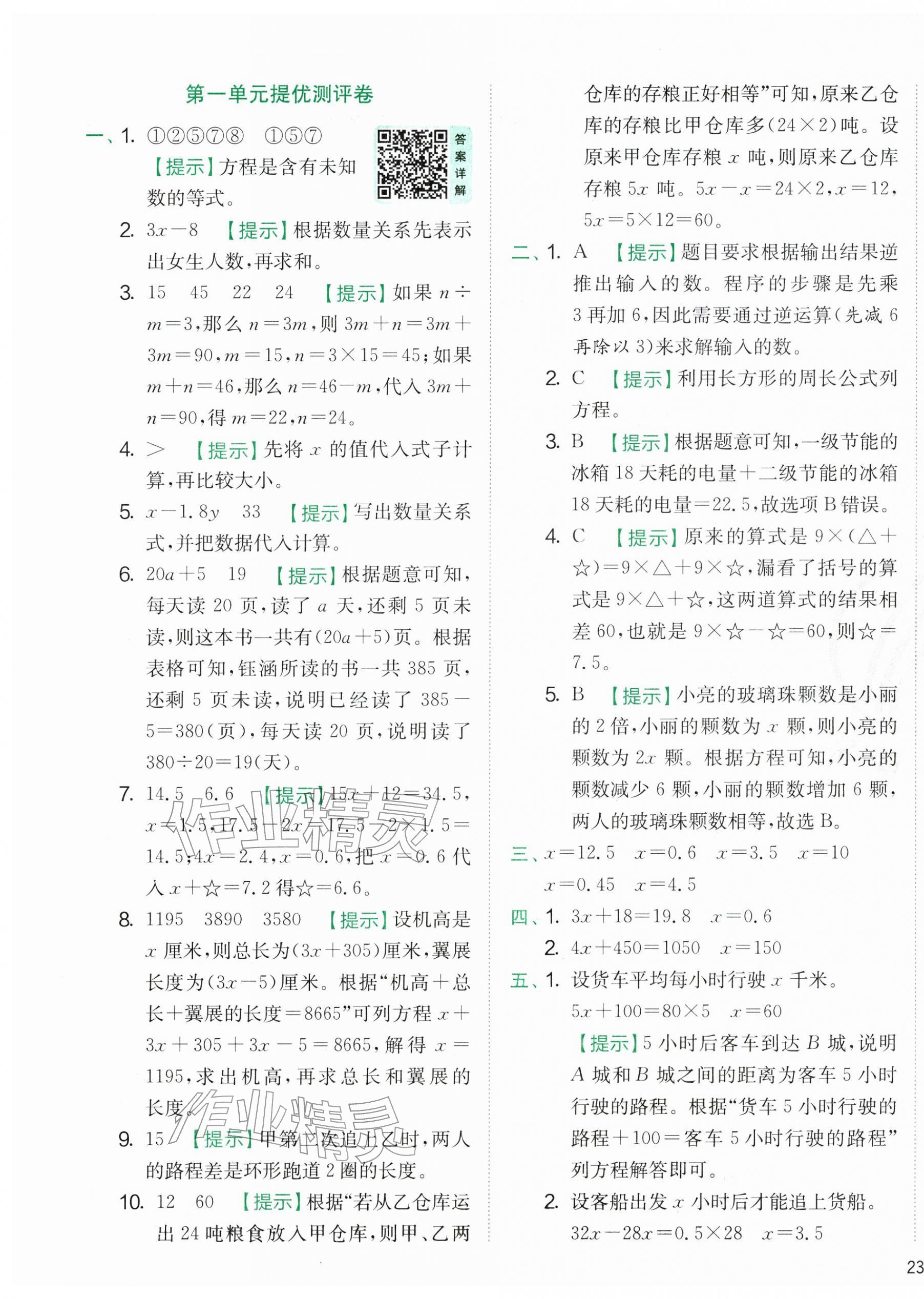 2026年实验班提优训练五年级数学下册苏教版参考答案第49页