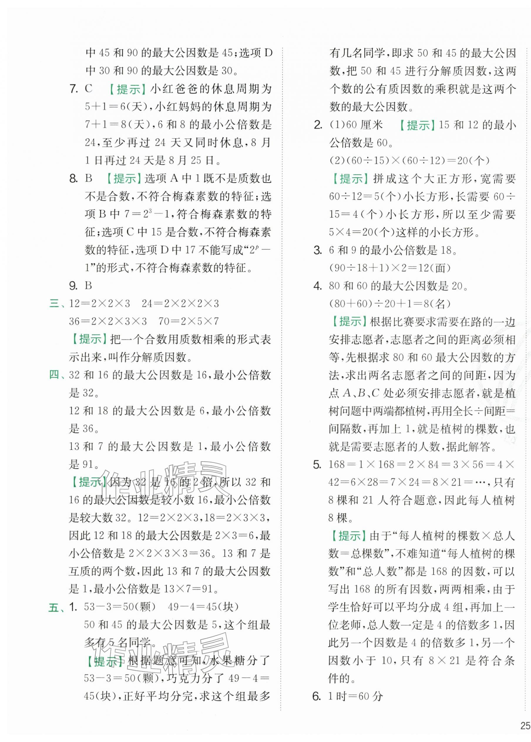 2026年实验班提优训练五年级数学下册苏教版参考答案第53页