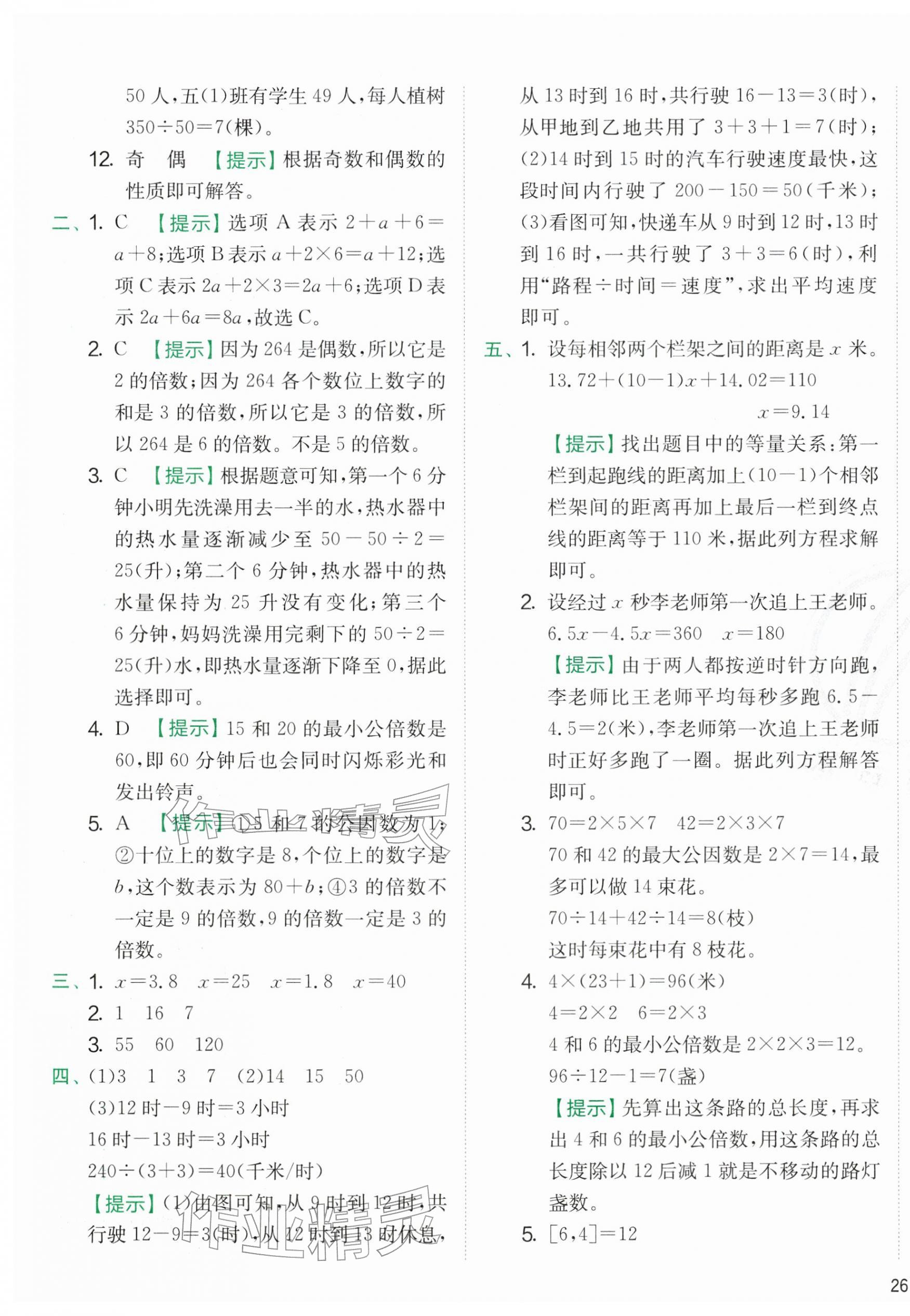 2026年实验班提优训练五年级数学下册苏教版参考答案第55页