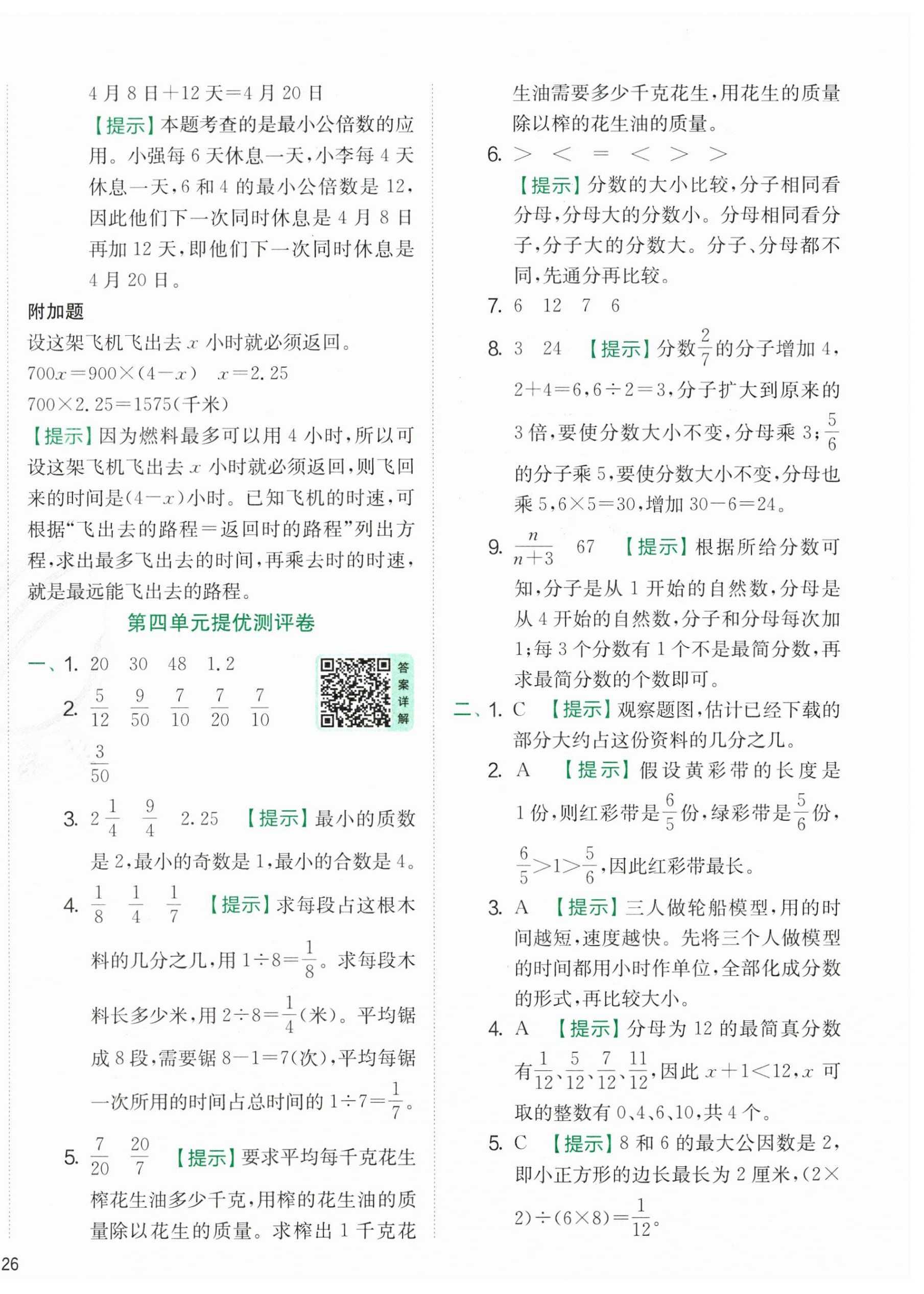 2026年实验班提优训练五年级数学下册苏教版参考答案第56页