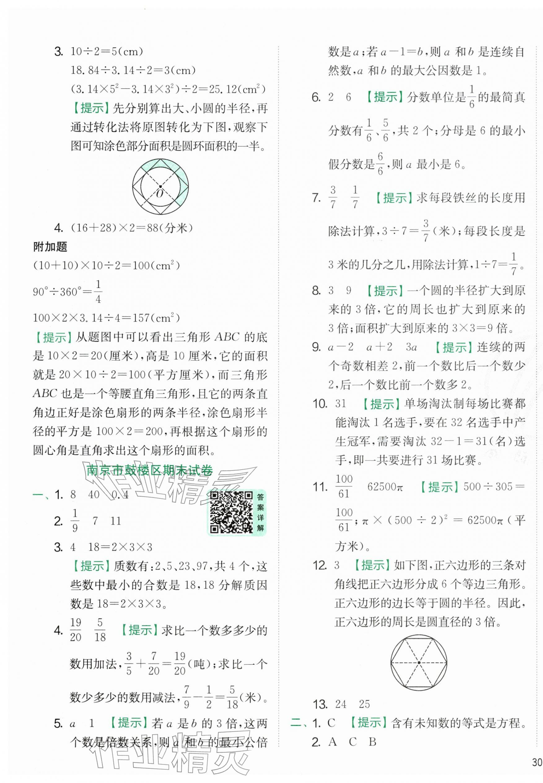 2026年实验班提优训练五年级数学下册苏教版参考答案第63页