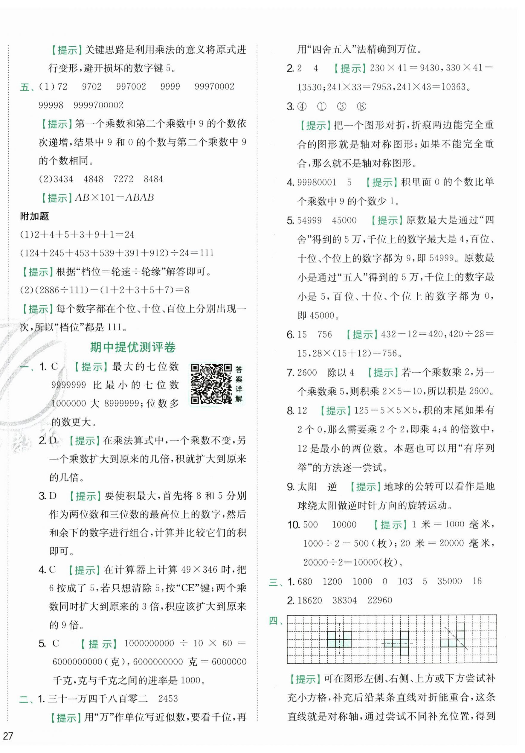 2026年实验班提优训练四年级数学下册苏教版参考答案第38页