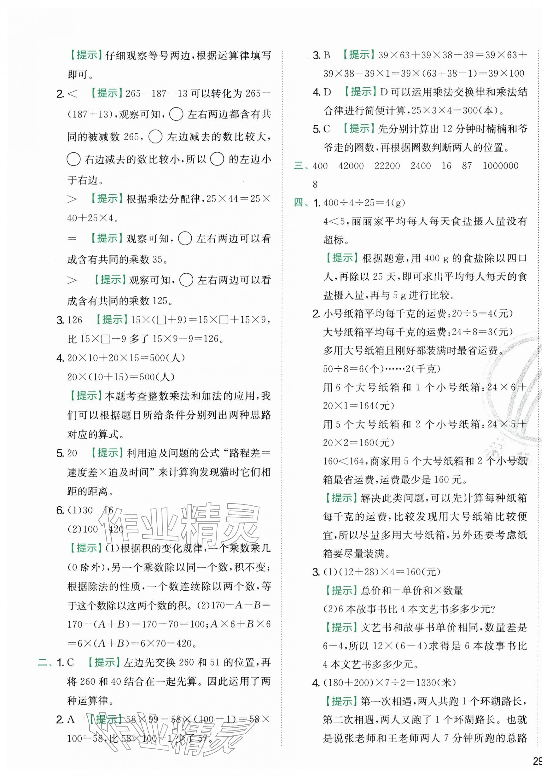 2026年实验班提优训练四年级数学下册苏教版参考答案第41页