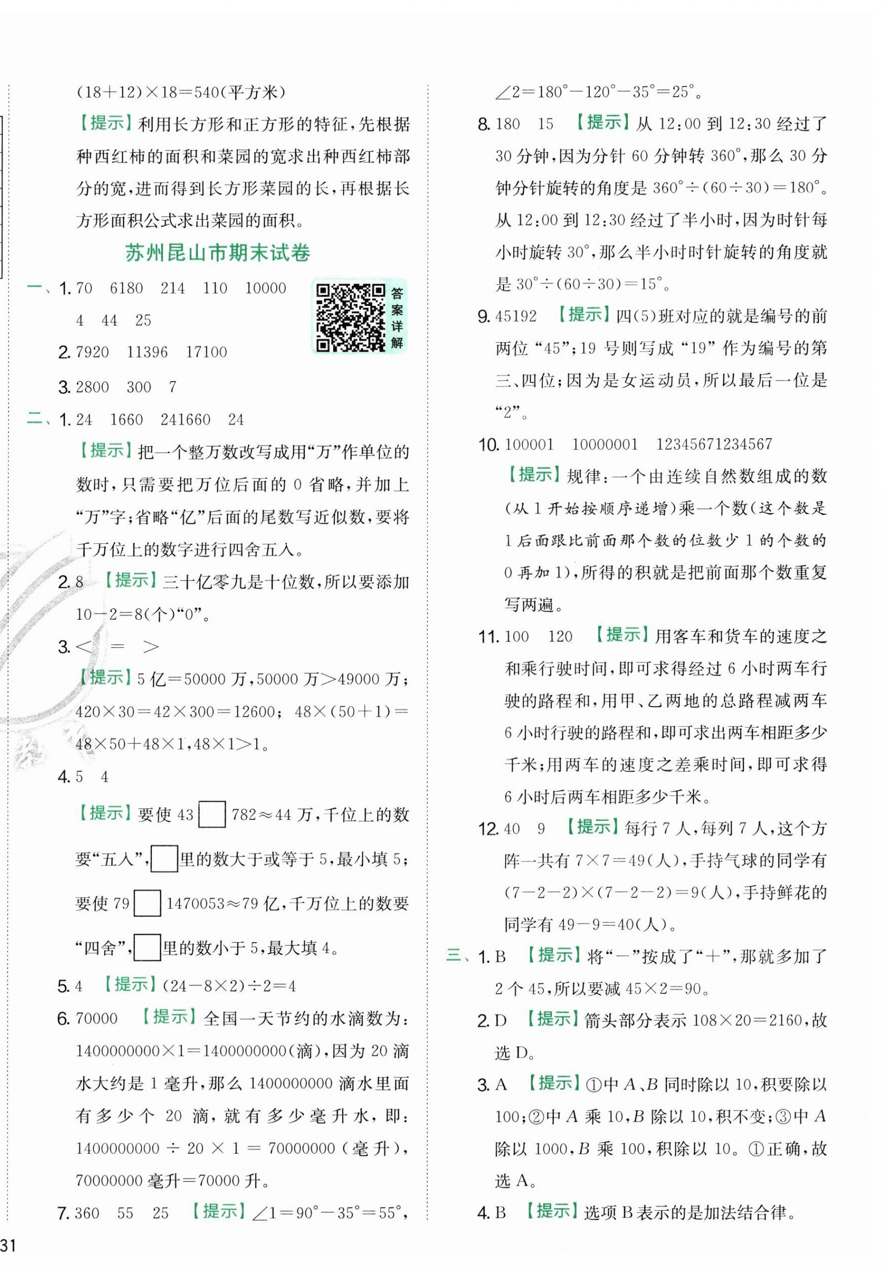 2026年实验班提优训练四年级数学下册苏教版参考答案第46页