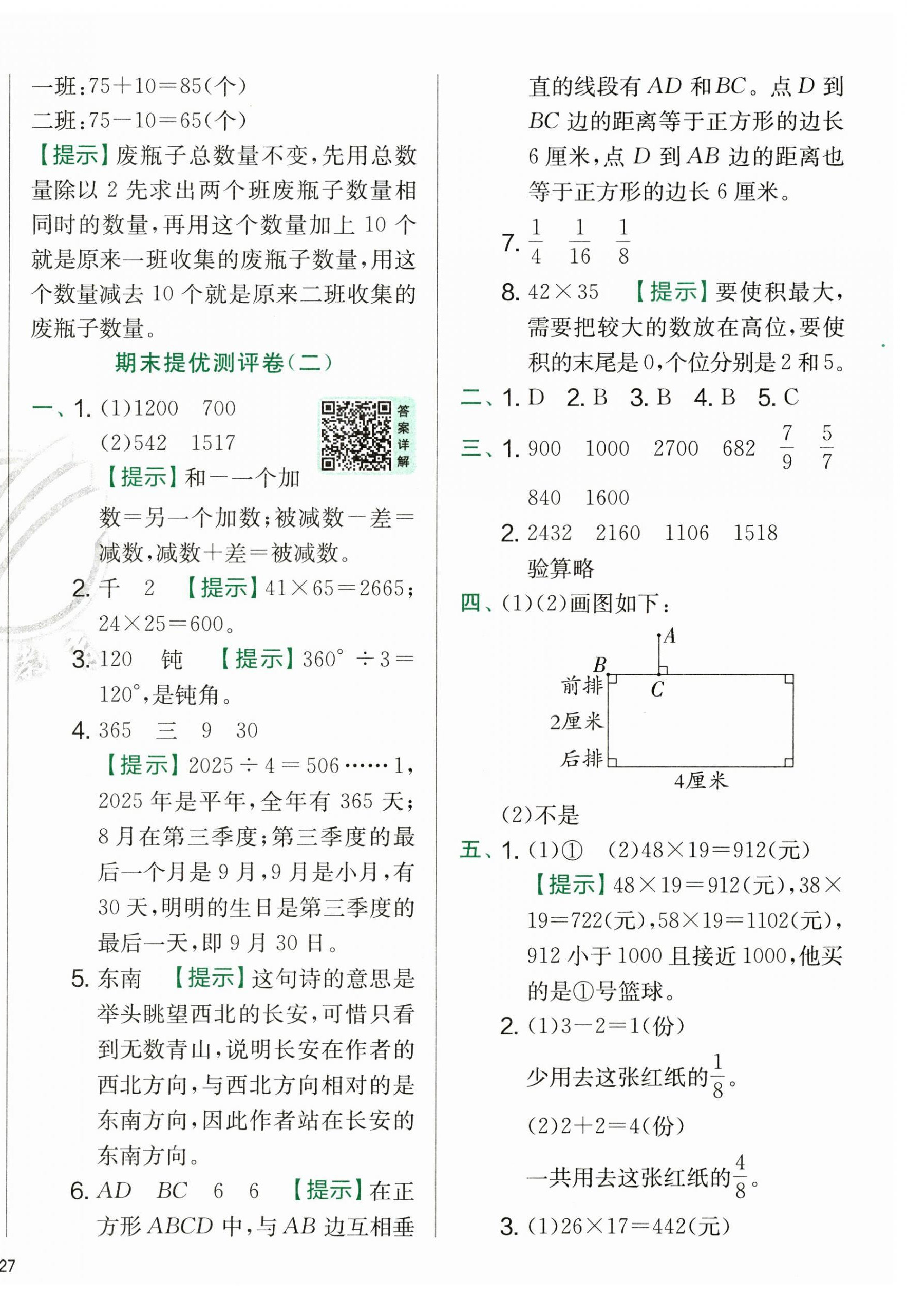 2026年实验班提优训练三年级数学下册苏教版第46页