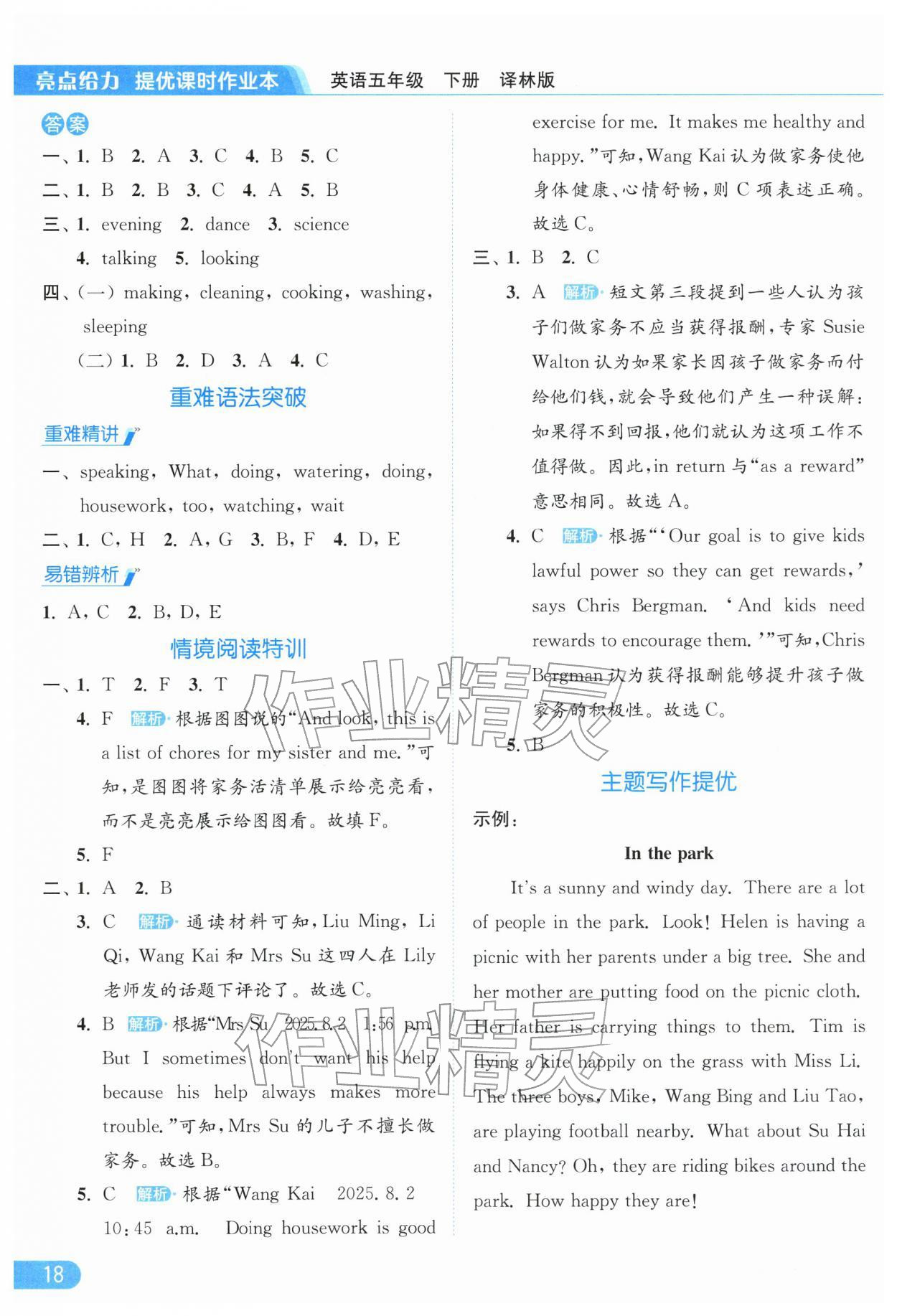 2026年亮点给力提优课时作业本五年级英语下册译林版参考答案第18页