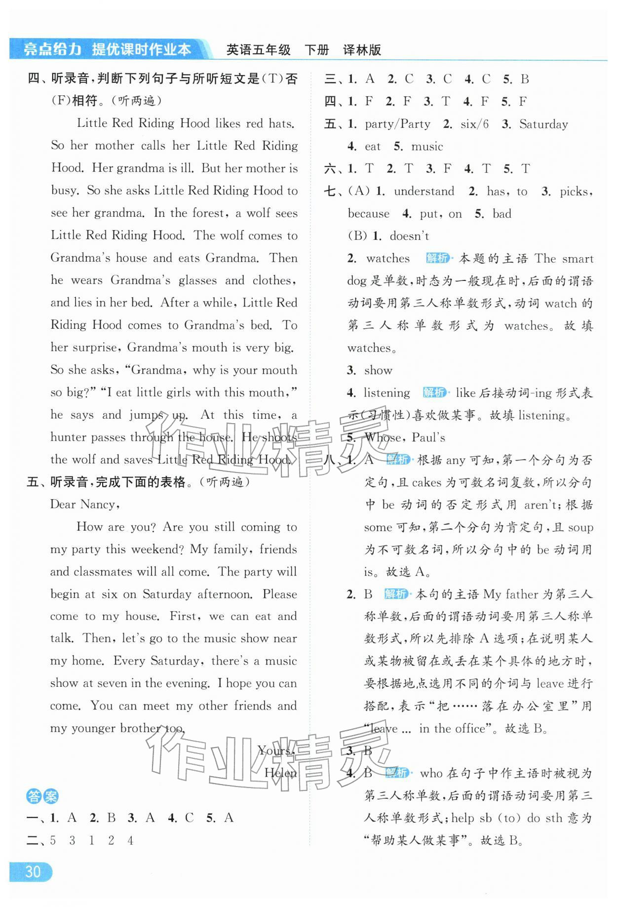 2026年亮点给力提优课时作业本五年级英语下册译林版参考答案第30页