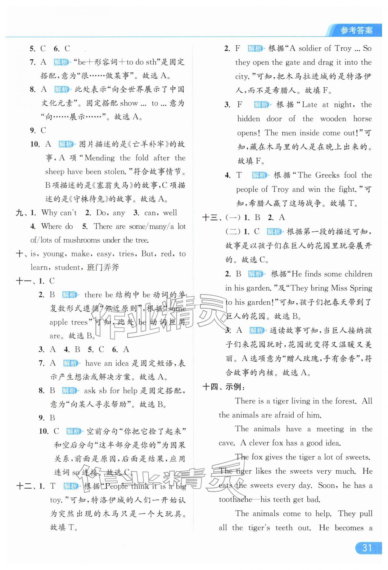 2026年亮点给力提优课时作业本五年级英语下册译林版参考答案第31页