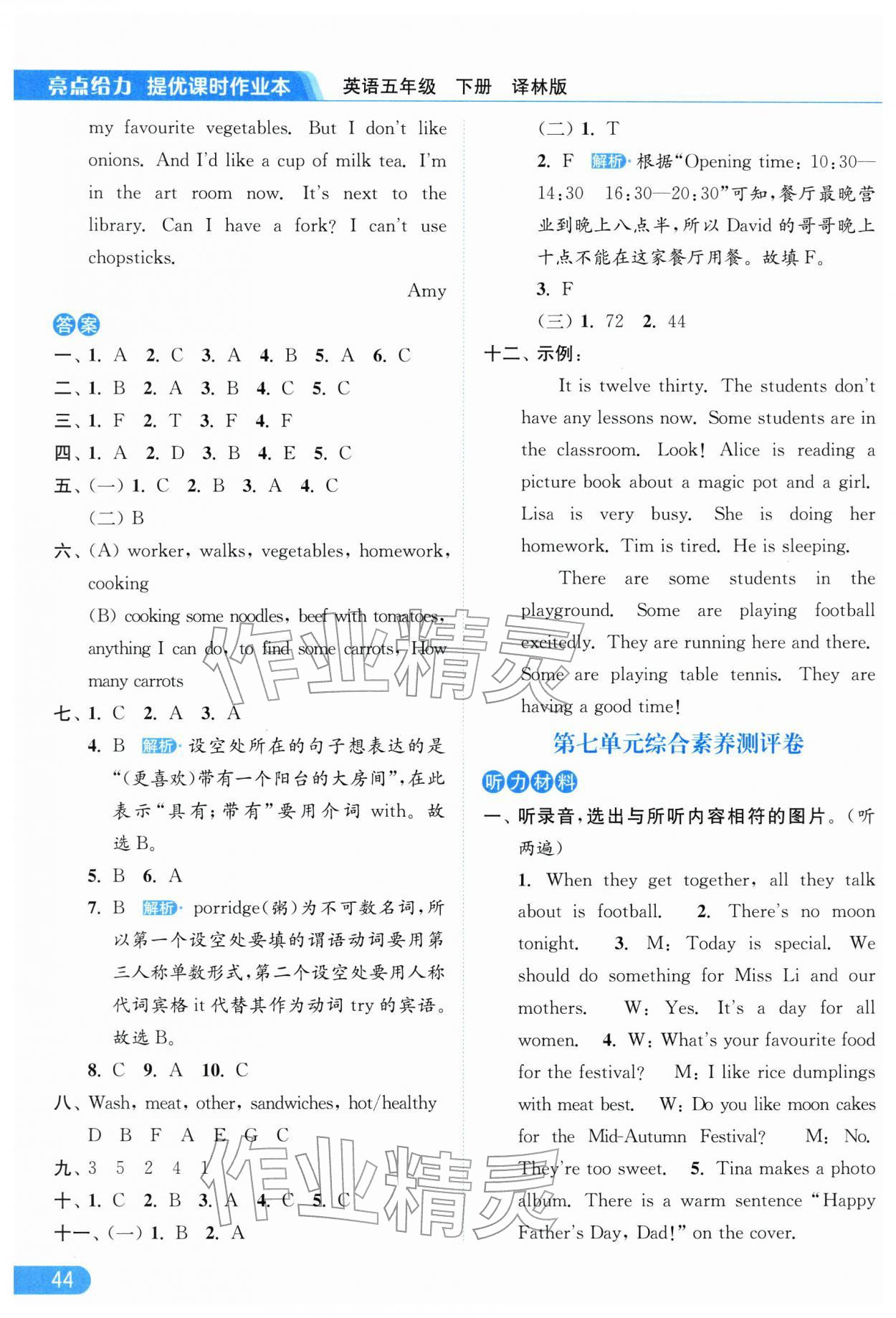 2026年亮点给力提优课时作业本五年级英语下册译林版参考答案第44页