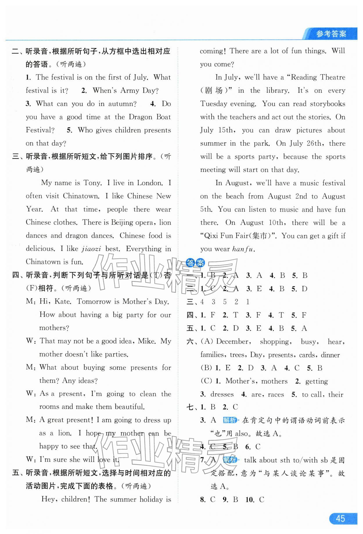 2026年亮点给力提优课时作业本五年级英语下册译林版参考答案第45页