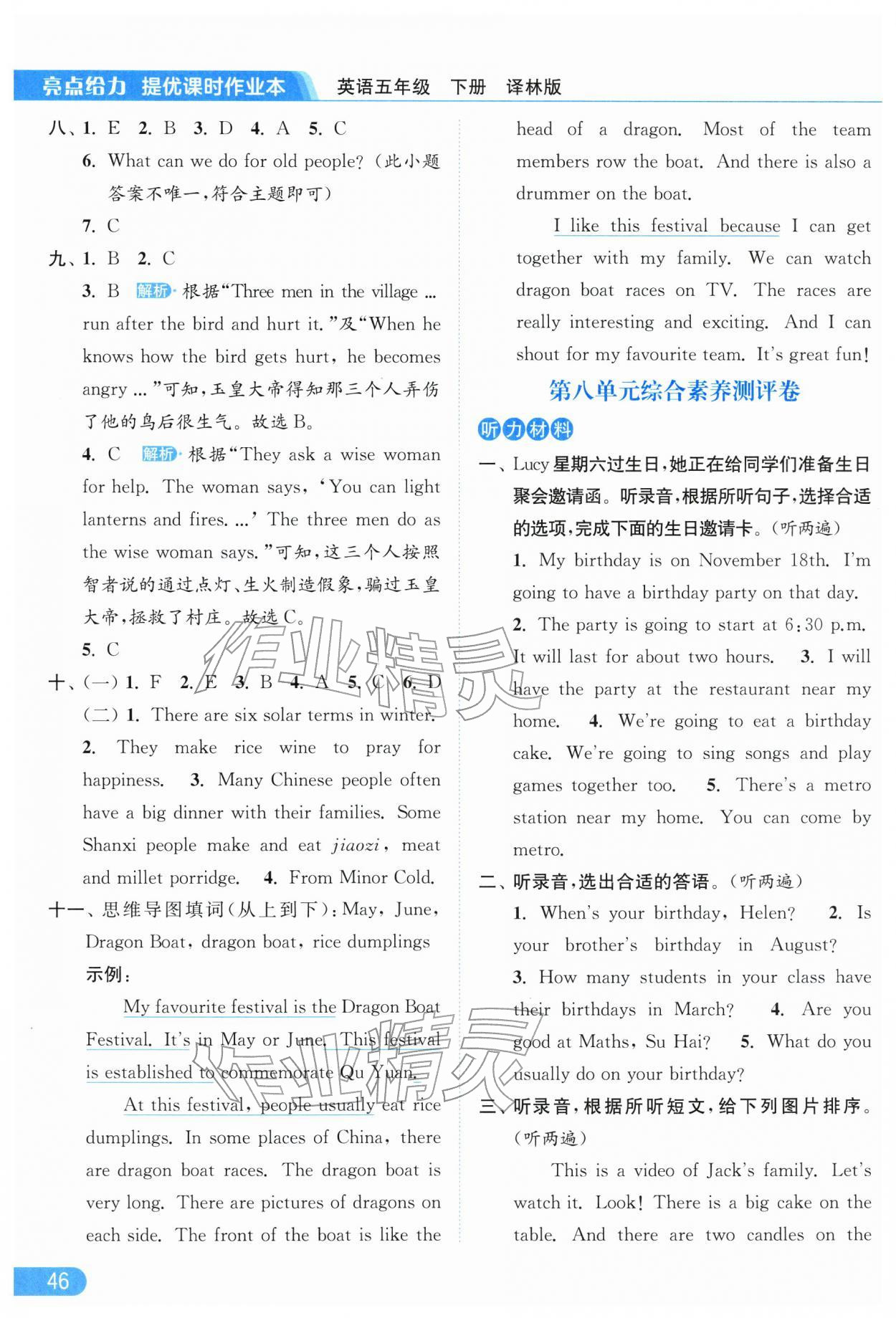2026年亮点给力提优课时作业本五年级英语下册译林版参考答案第46页