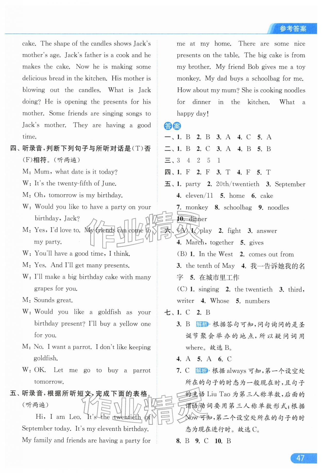 2026年亮点给力提优课时作业本五年级英语下册译林版参考答案第47页