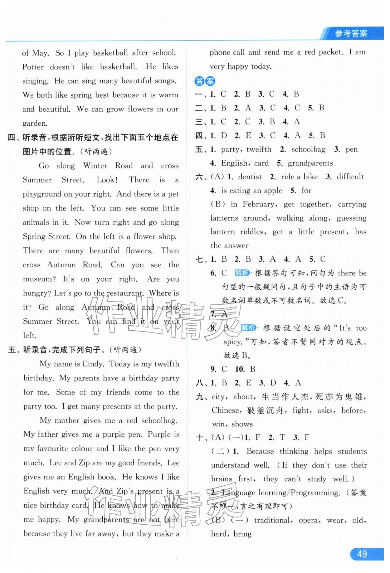 2026年亮点给力提优课时作业本五年级英语下册译林版参考答案第49页