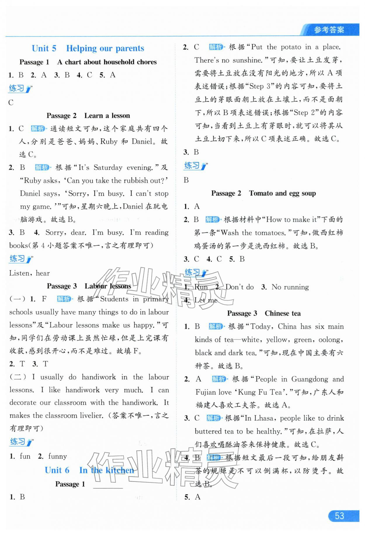 2026年亮点给力提优课时作业本五年级英语下册译林版参考答案第53页