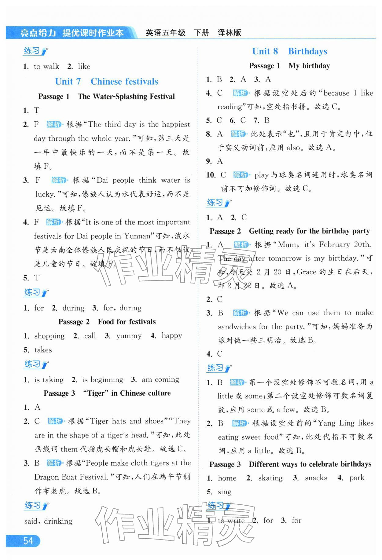 2026年亮点给力提优课时作业本五年级英语下册译林版参考答案第54页