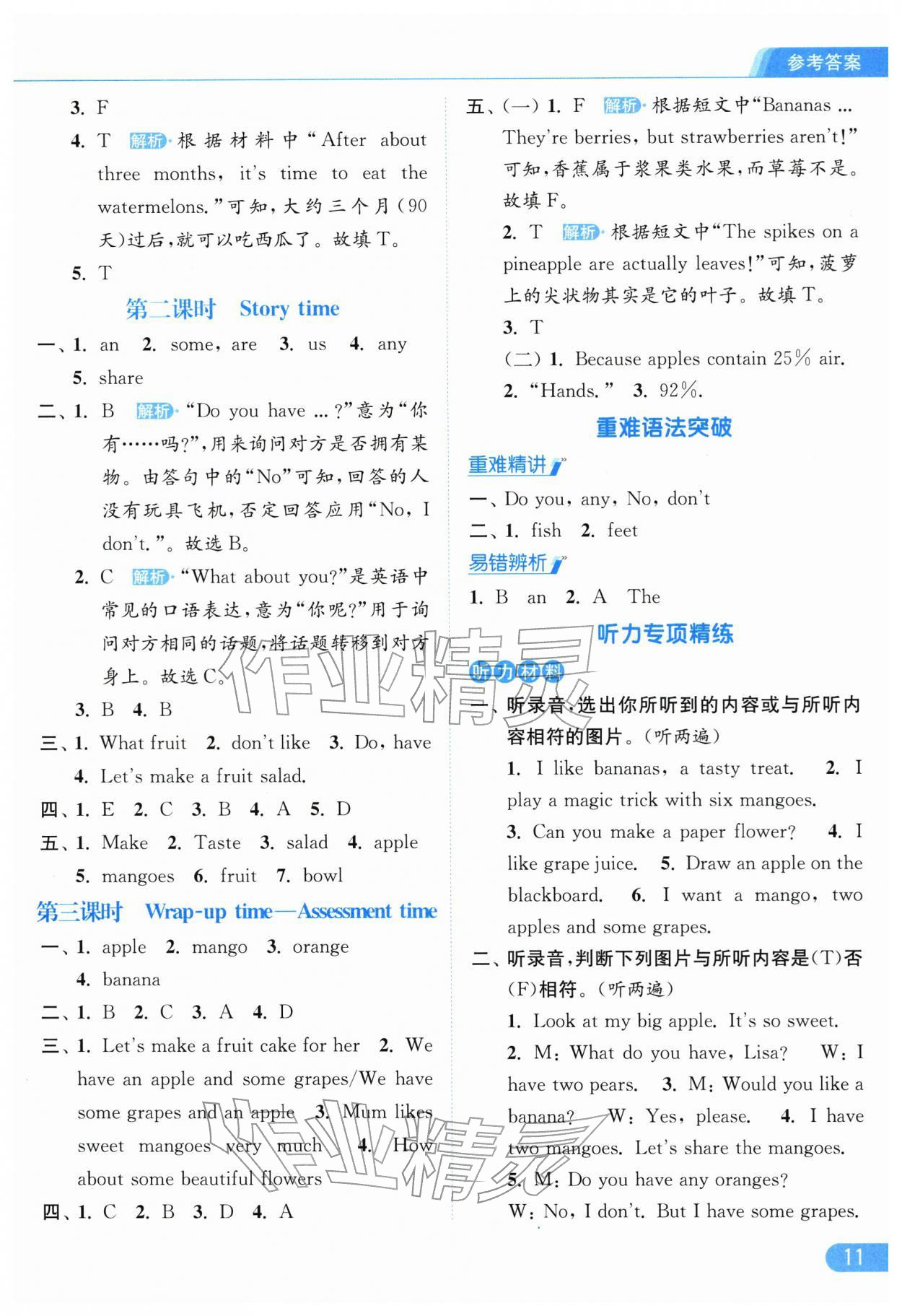 2026年亮点给力提优课时作业本三年级英语下册译林版参考答案第11页