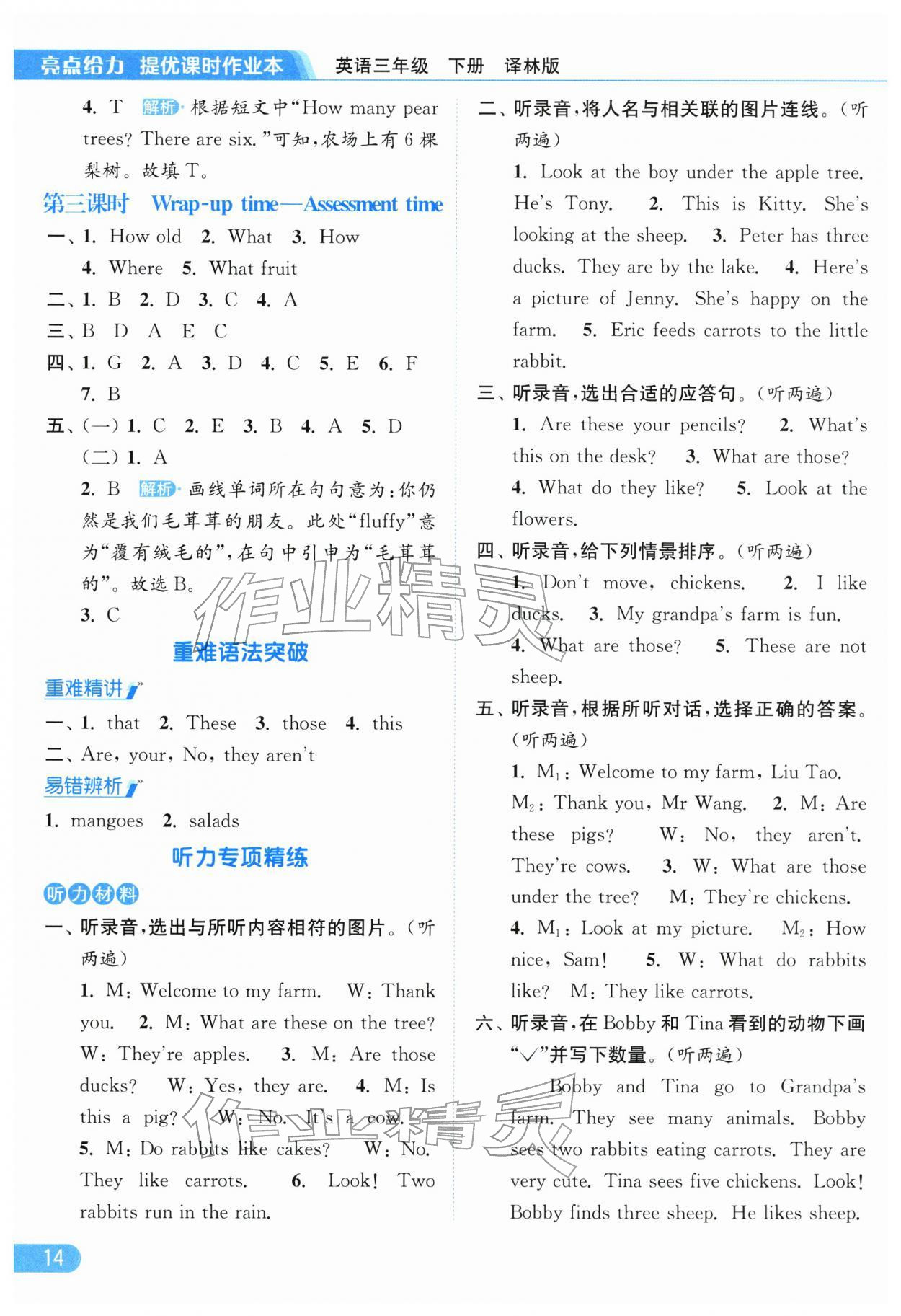 2026年亮点给力提优课时作业本三年级英语下册译林版参考答案第14页