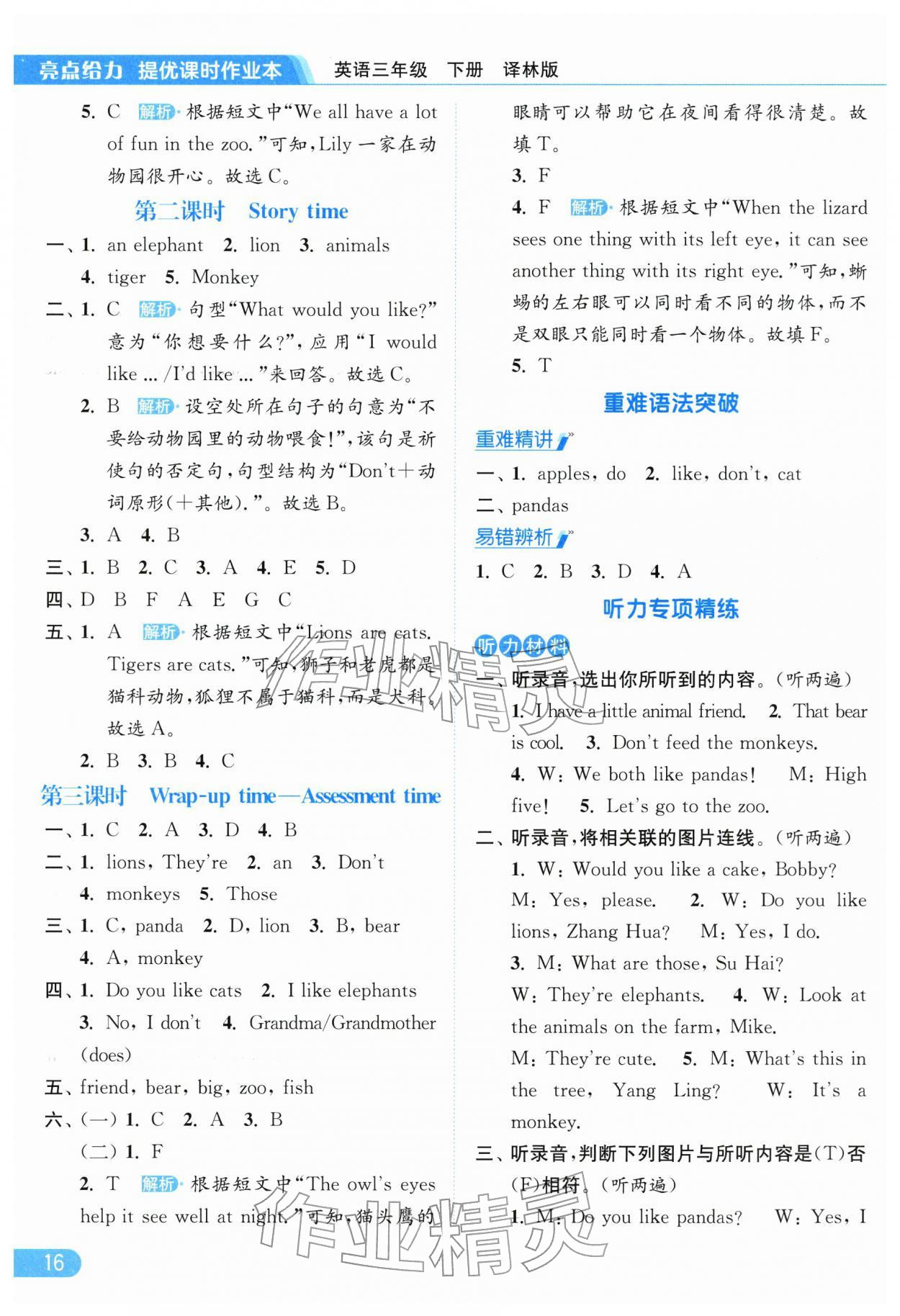 2026年亮点给力提优课时作业本三年级英语下册译林版参考答案第16页