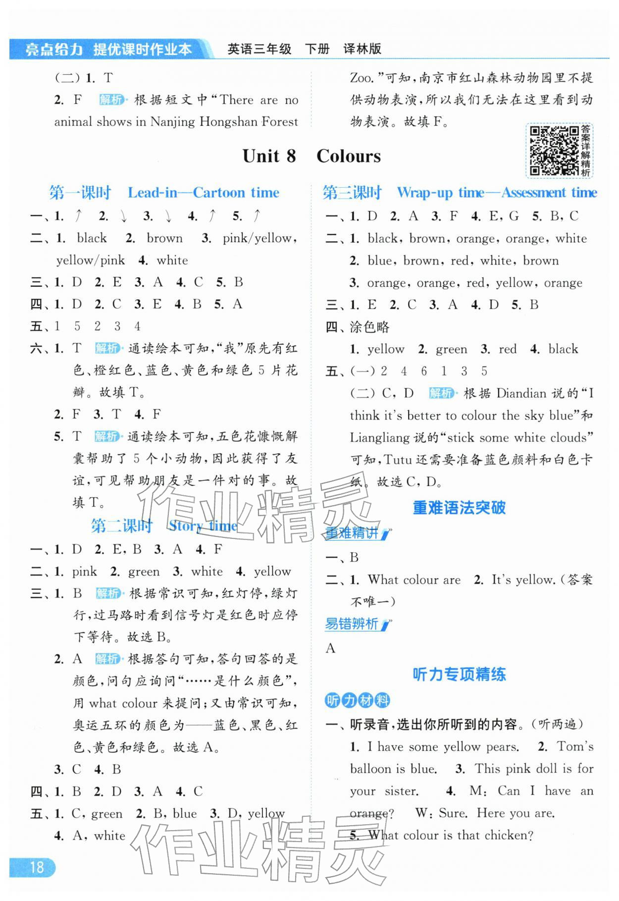 2026年亮点给力提优课时作业本三年级英语下册译林版参考答案第18页