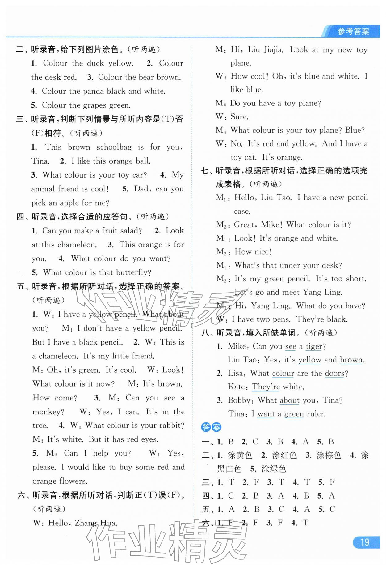 2026年亮点给力提优课时作业本三年级英语下册译林版参考答案第19页