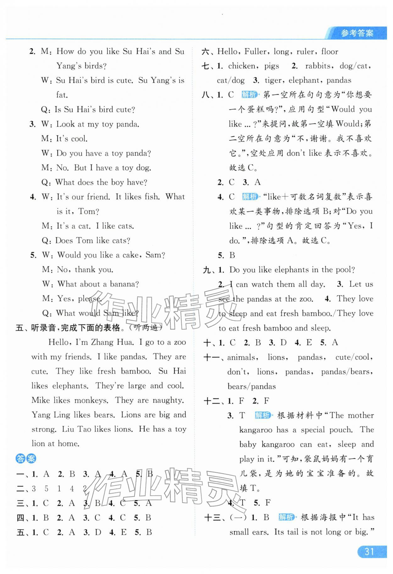 2026年亮点给力提优课时作业本三年级英语下册译林版参考答案第31页