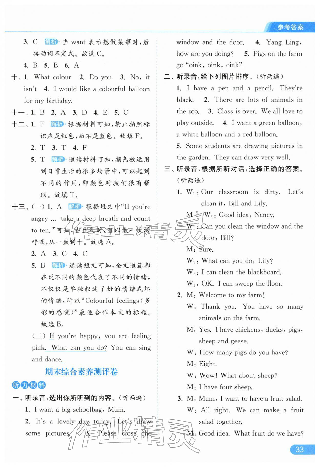 2026年亮点给力提优课时作业本三年级英语下册译林版参考答案第33页