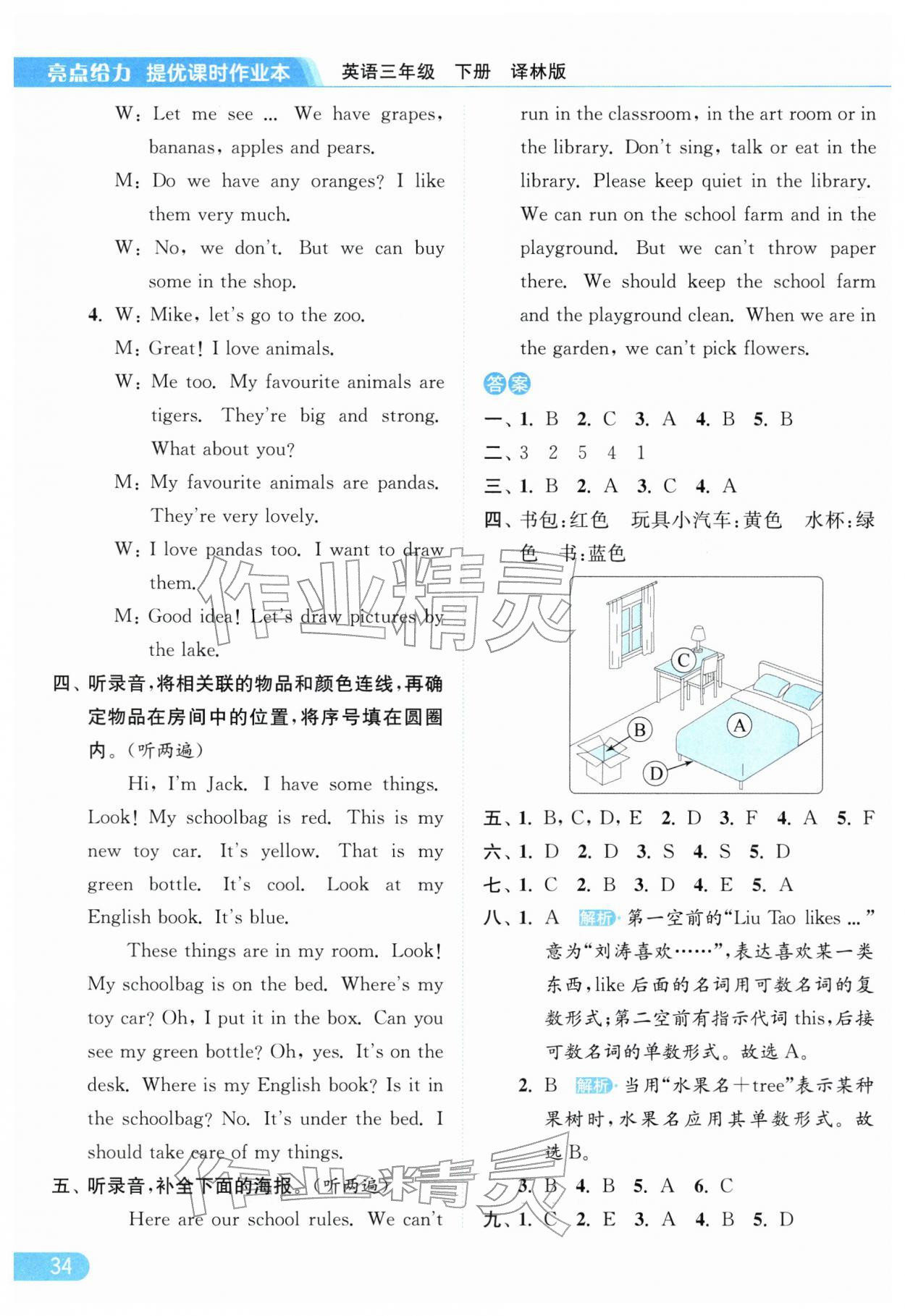 2026年亮点给力提优课时作业本三年级英语下册译林版参考答案第34页