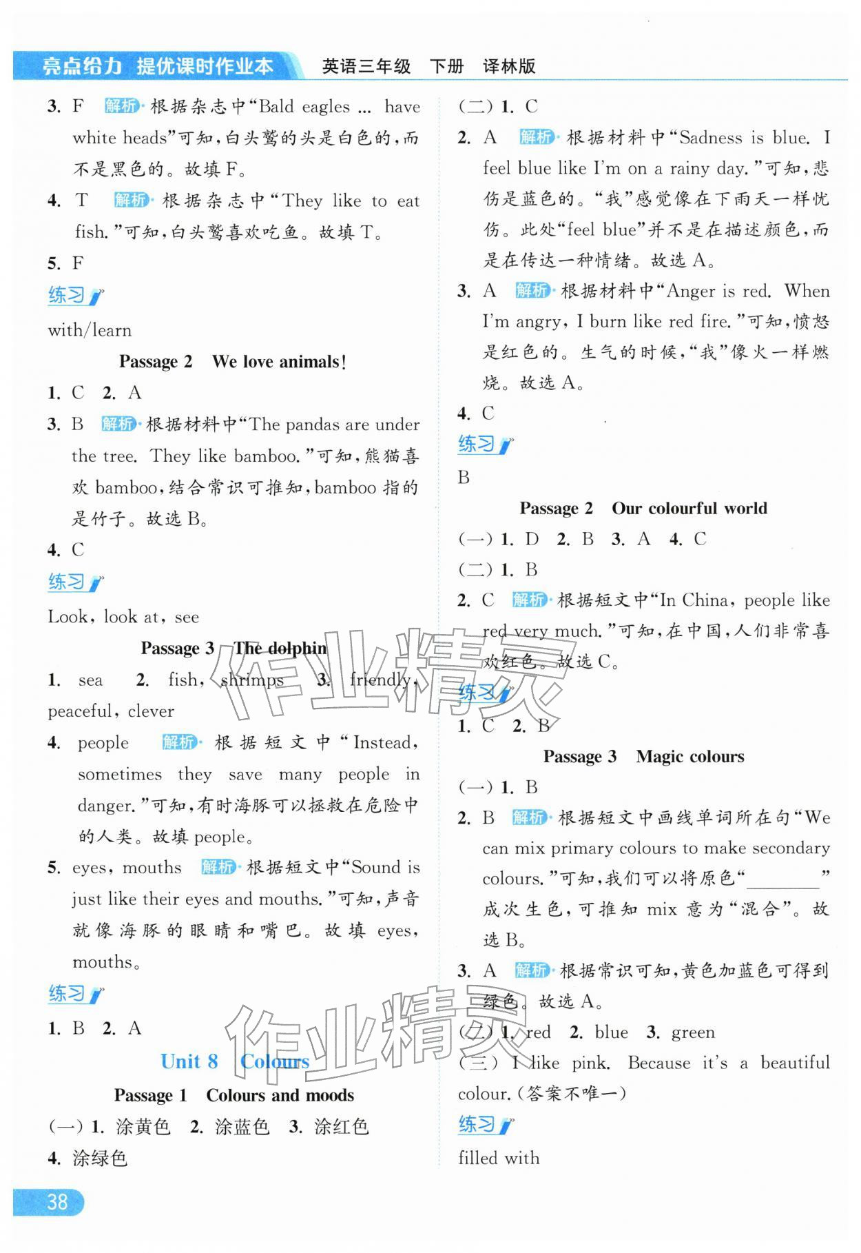 2026年亮点给力提优课时作业本三年级英语下册译林版参考答案第38页