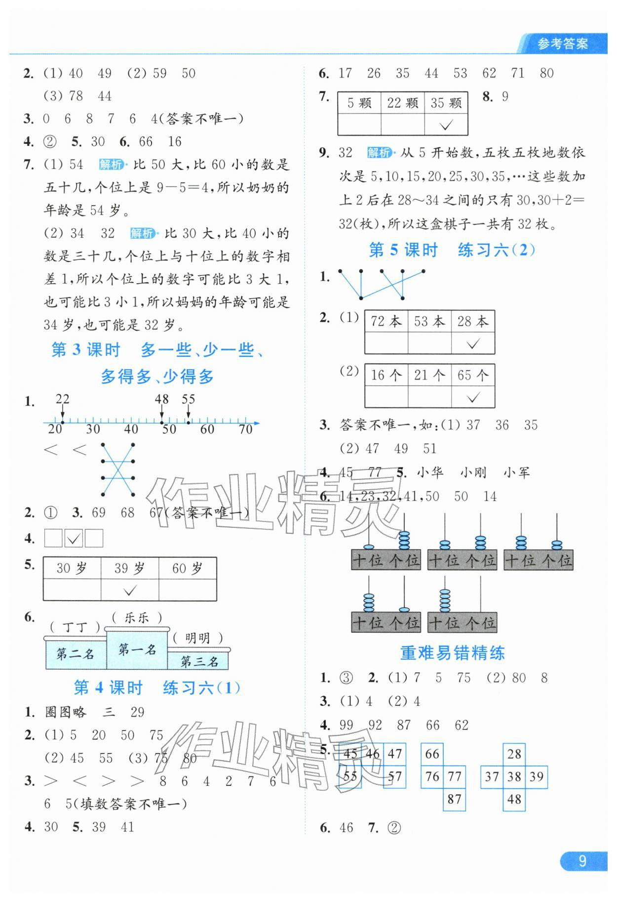 2026年亮点给力提优课时作业本一年级数学下册苏教版江苏专版参考答案第9页