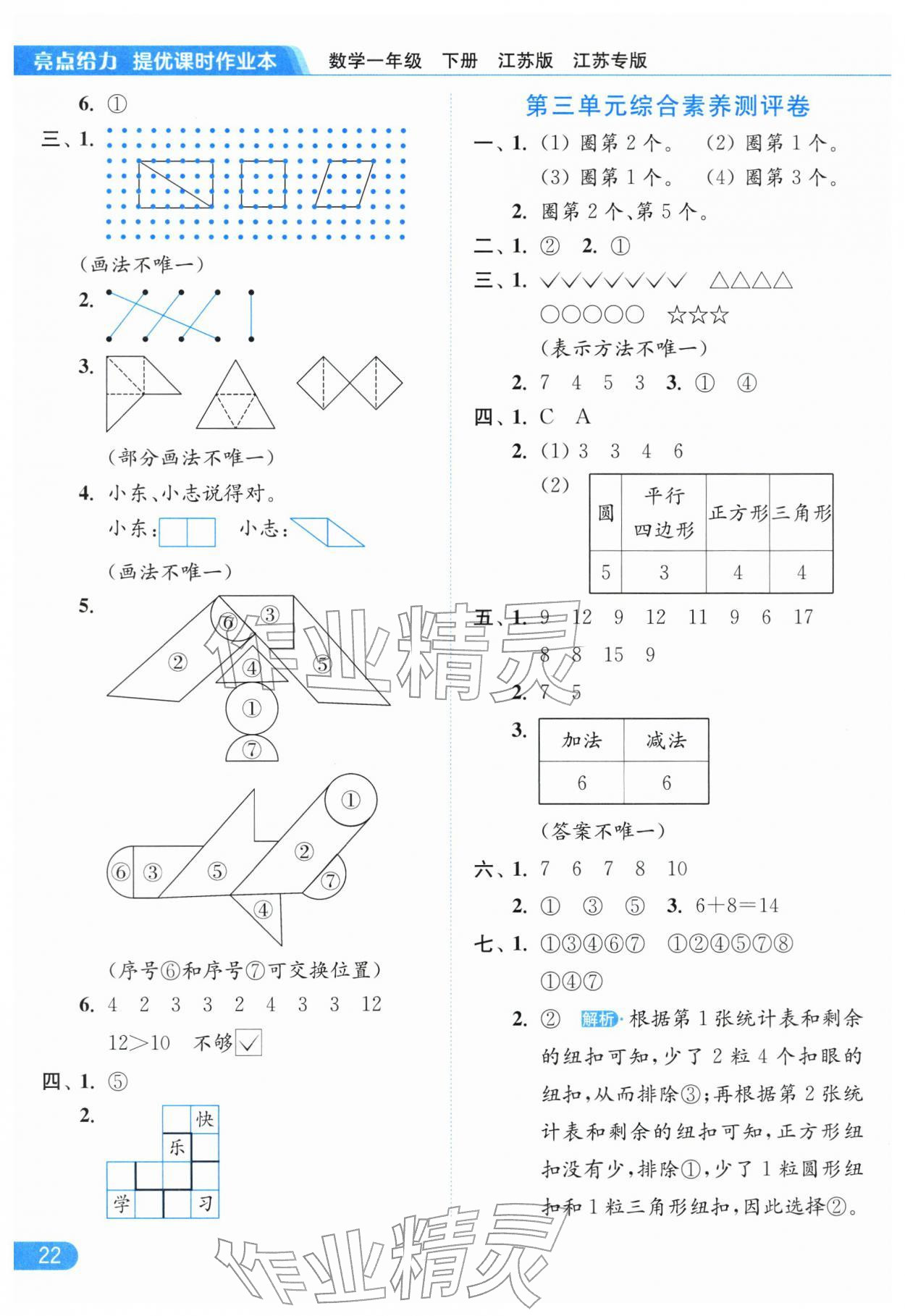 2026年亮点给力提优课时作业本一年级数学下册苏教版江苏专版参考答案第22页