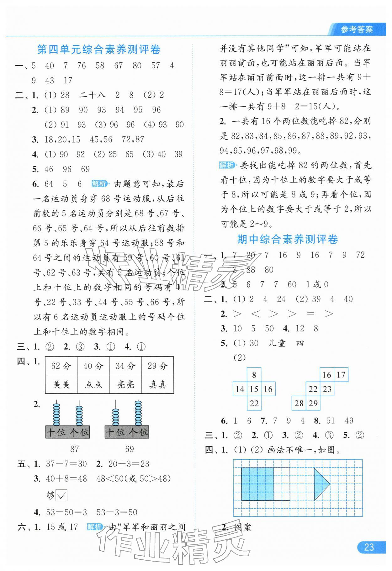 2026年亮点给力提优课时作业本一年级数学下册苏教版江苏专版参考答案第23页