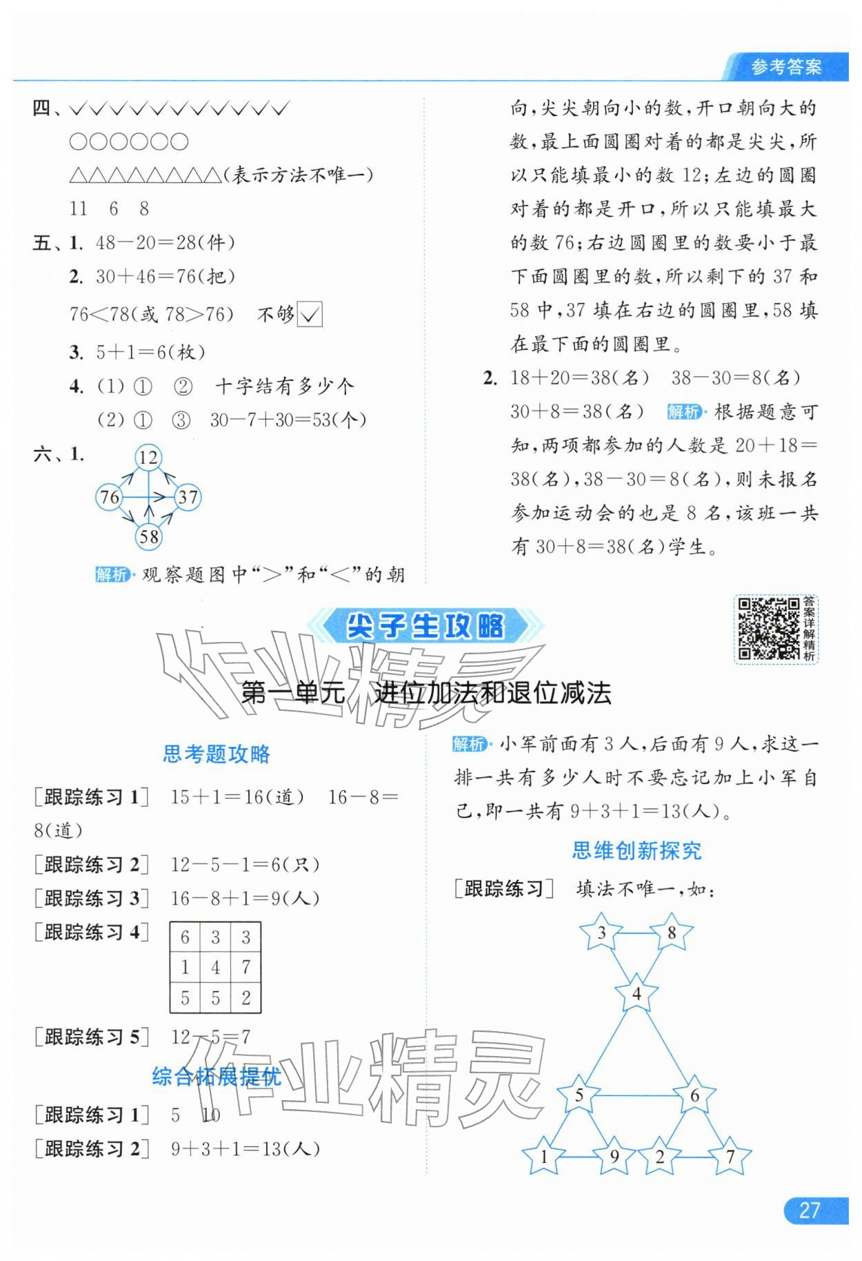 2026年亮点给力提优课时作业本一年级数学下册苏教版江苏专版参考答案第27页