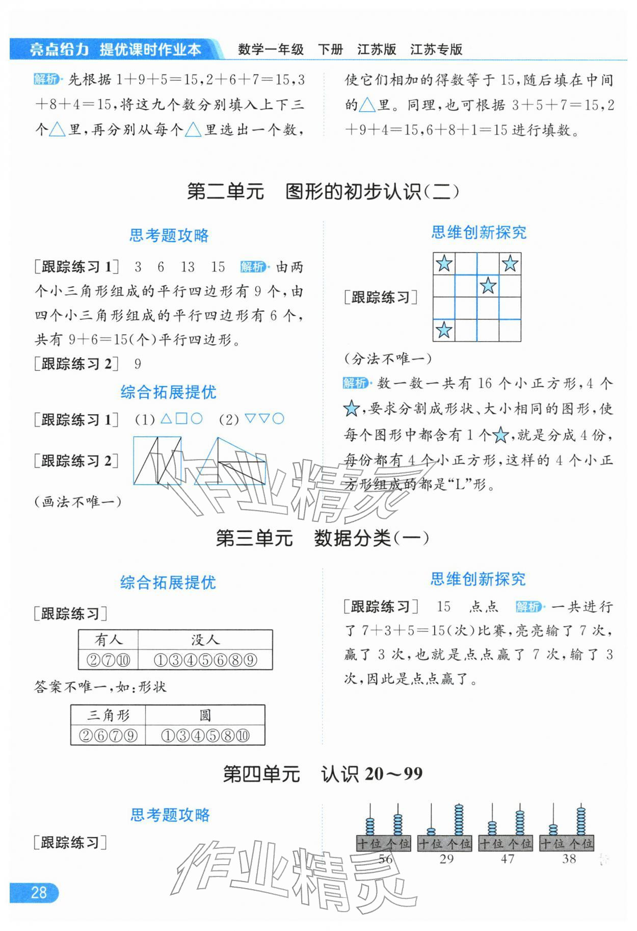 2026年亮点给力提优课时作业本一年级数学下册苏教版江苏专版参考答案第28页
