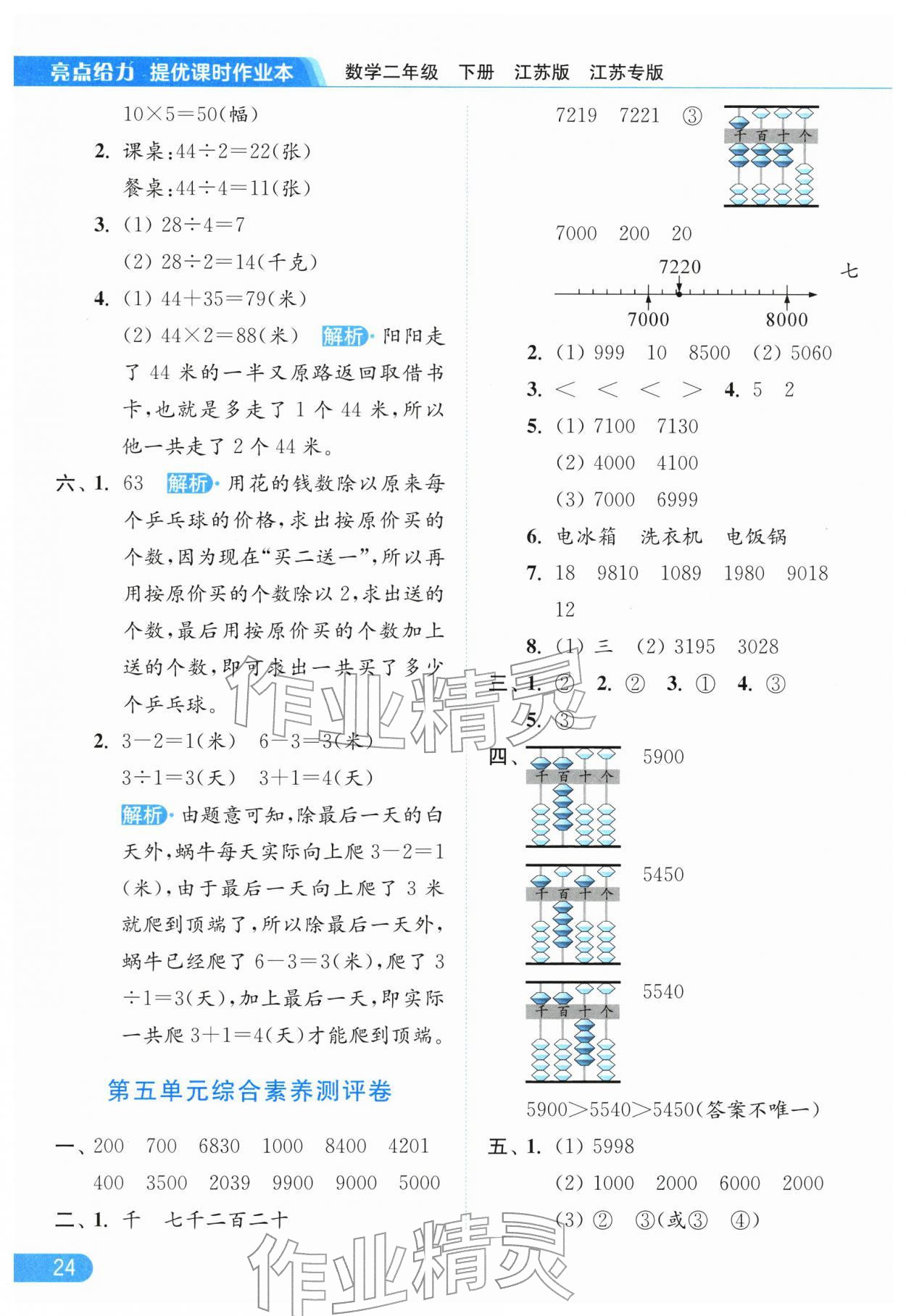 2026年亮点给力提优课时作业本二年级数学下册苏教版江苏专版参考答案第24页