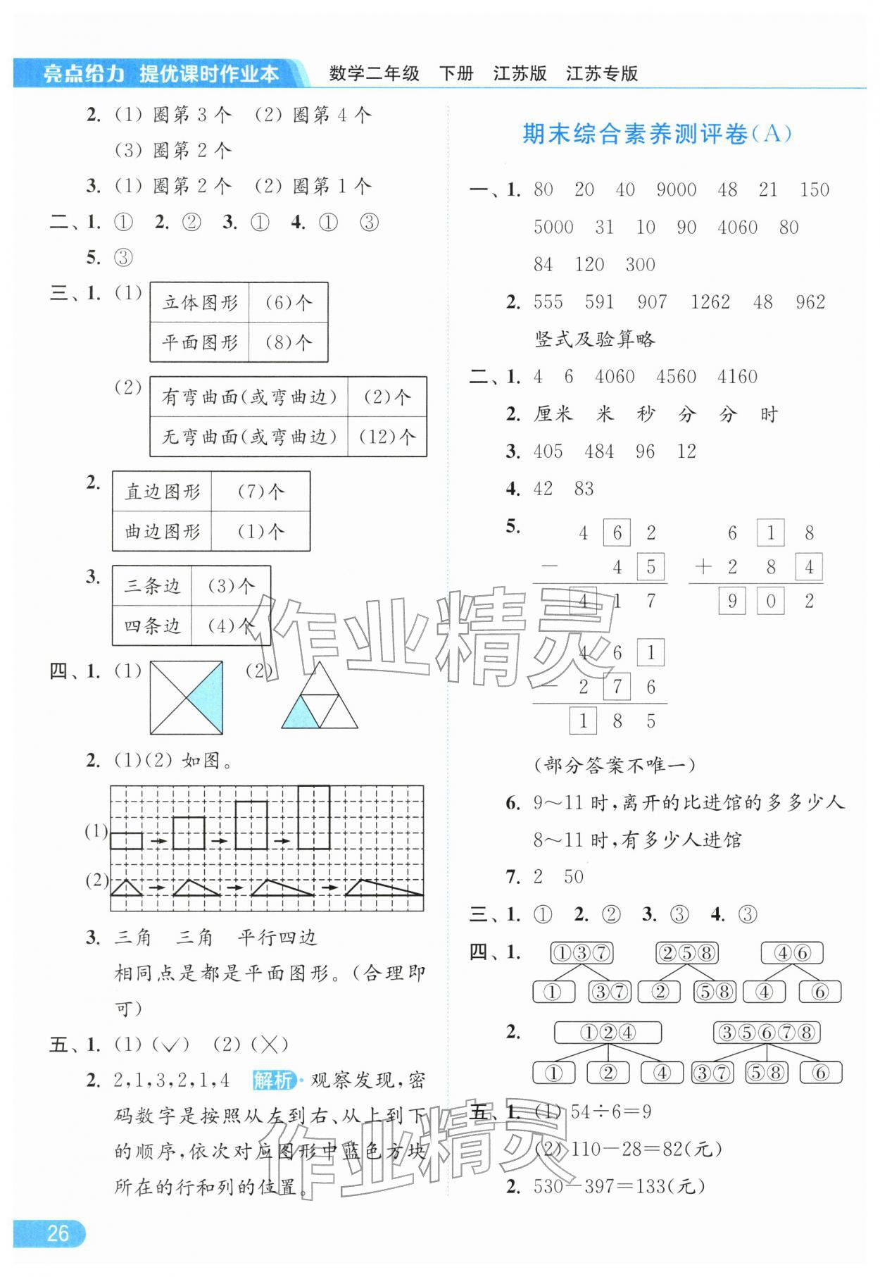 2026年亮点给力提优课时作业本二年级数学下册苏教版江苏专版参考答案第26页