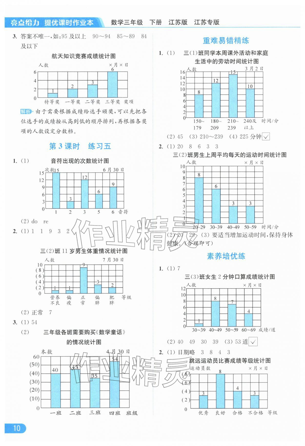 2026年亮点给力提优课时作业本三年级数学下册苏教版江苏专版参考答案第10页