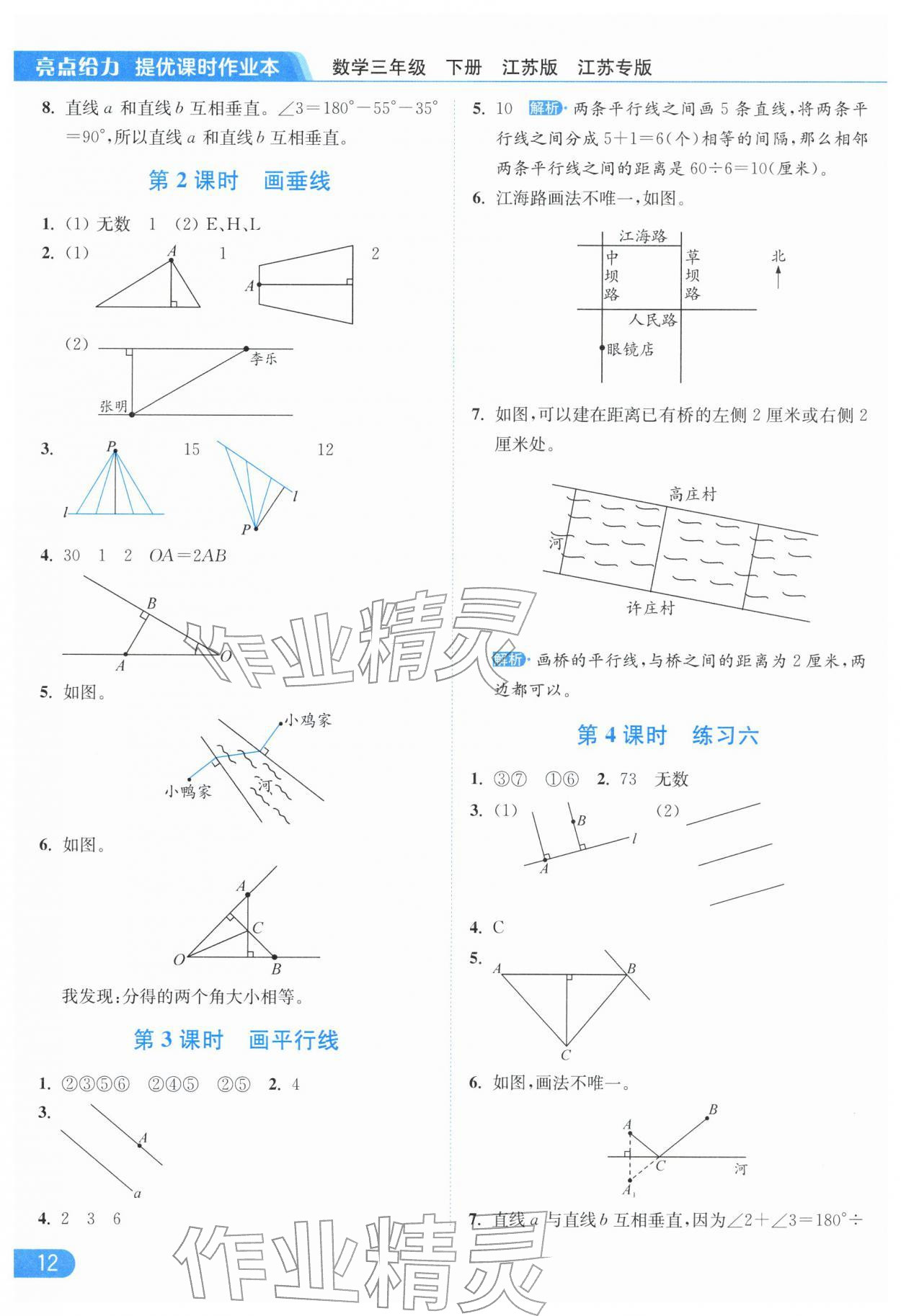 2026年亮点给力提优课时作业本三年级数学下册苏教版江苏专版参考答案第12页