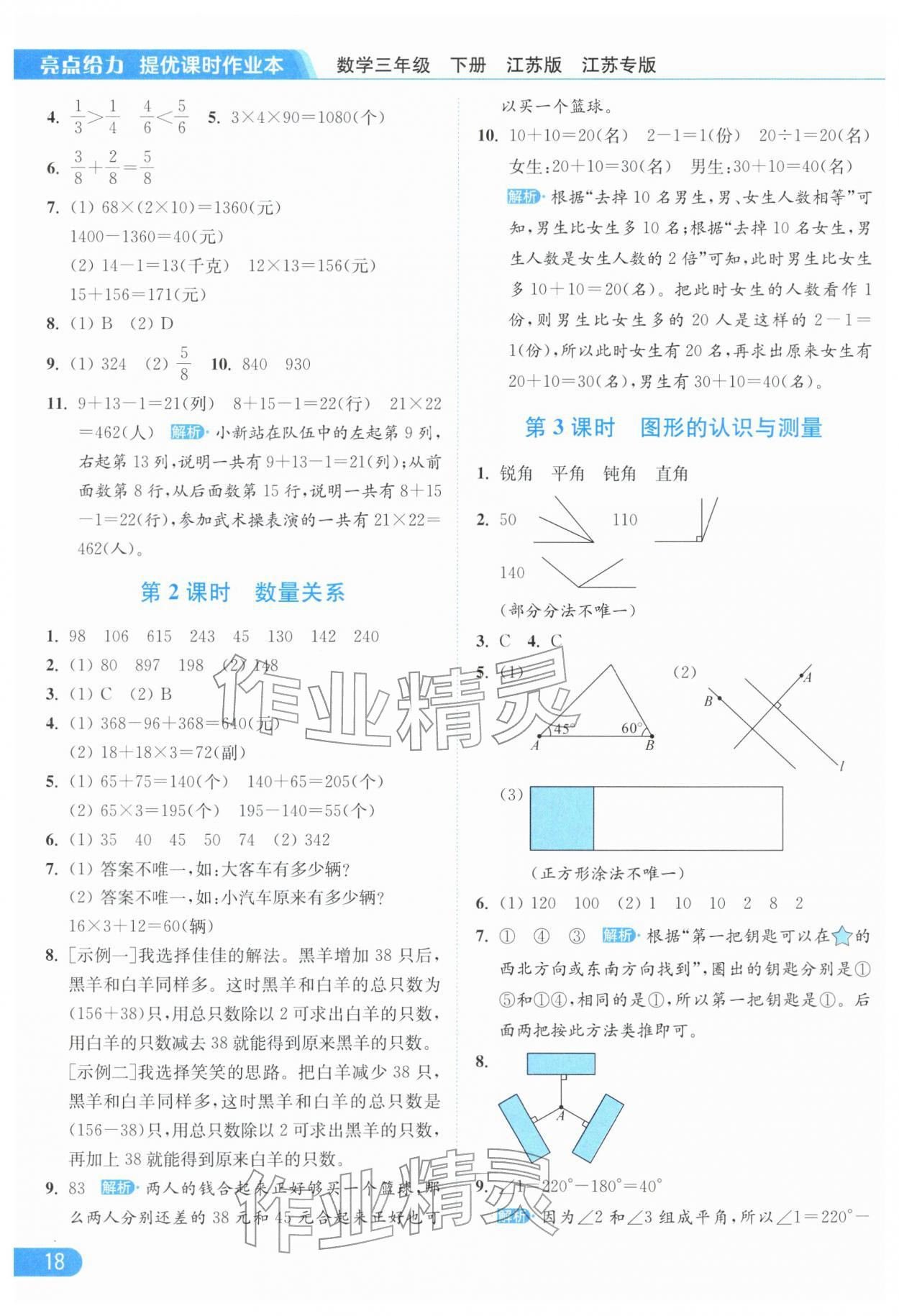 2026年亮点给力提优课时作业本三年级数学下册苏教版江苏专版参考答案第18页