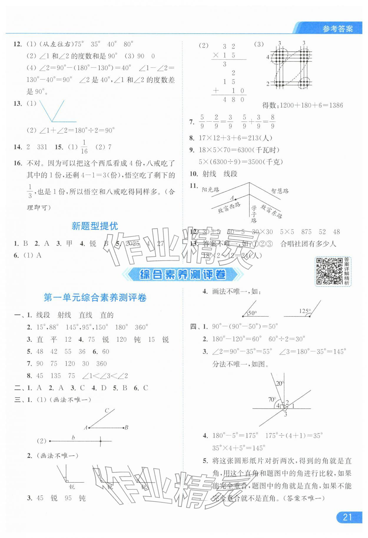 2026年亮点给力提优课时作业本三年级数学下册苏教版江苏专版参考答案第21页