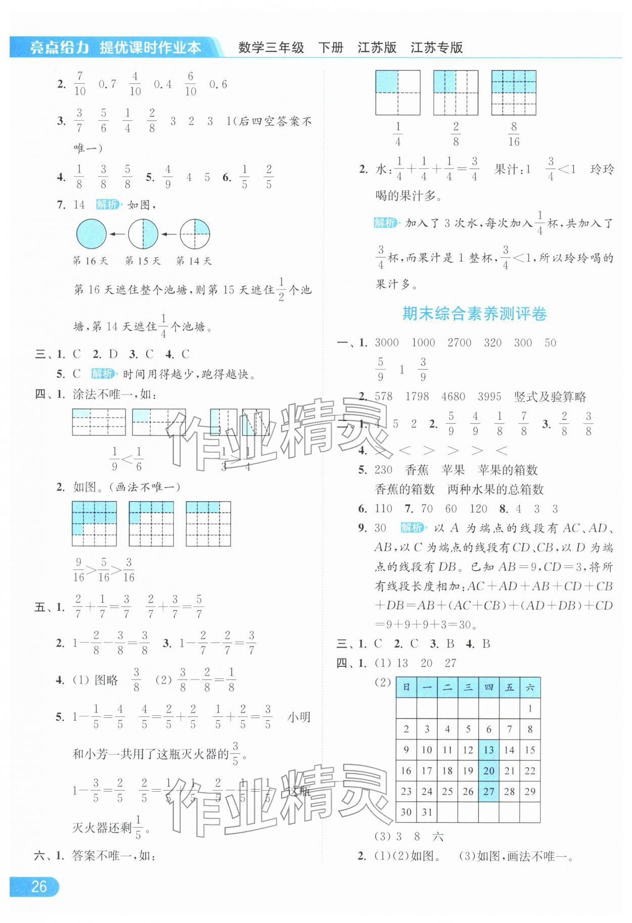 2026年亮点给力提优课时作业本三年级数学下册苏教版江苏专版参考答案第26页