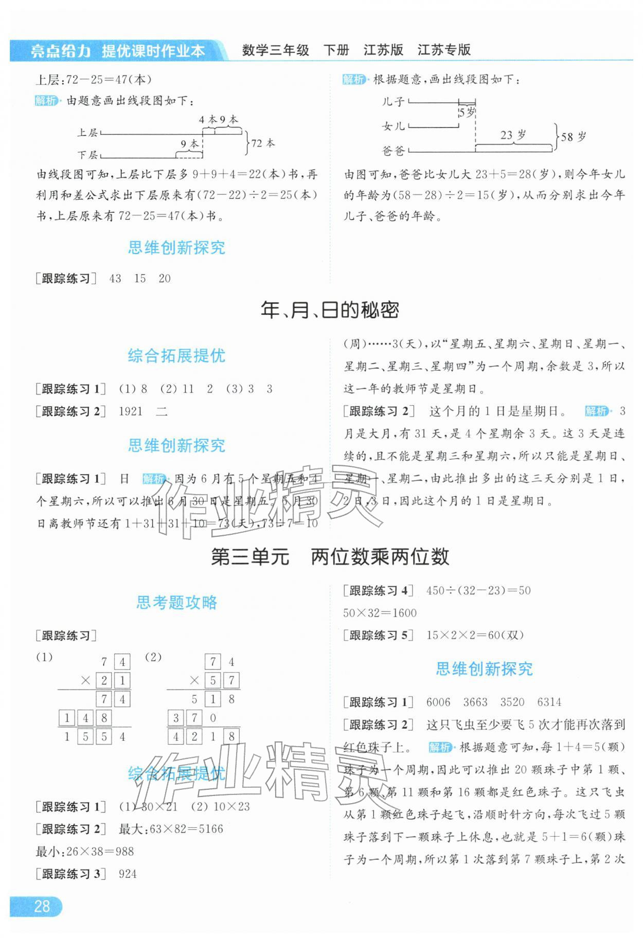 2026年亮点给力提优课时作业本三年级数学下册苏教版江苏专版参考答案第28页