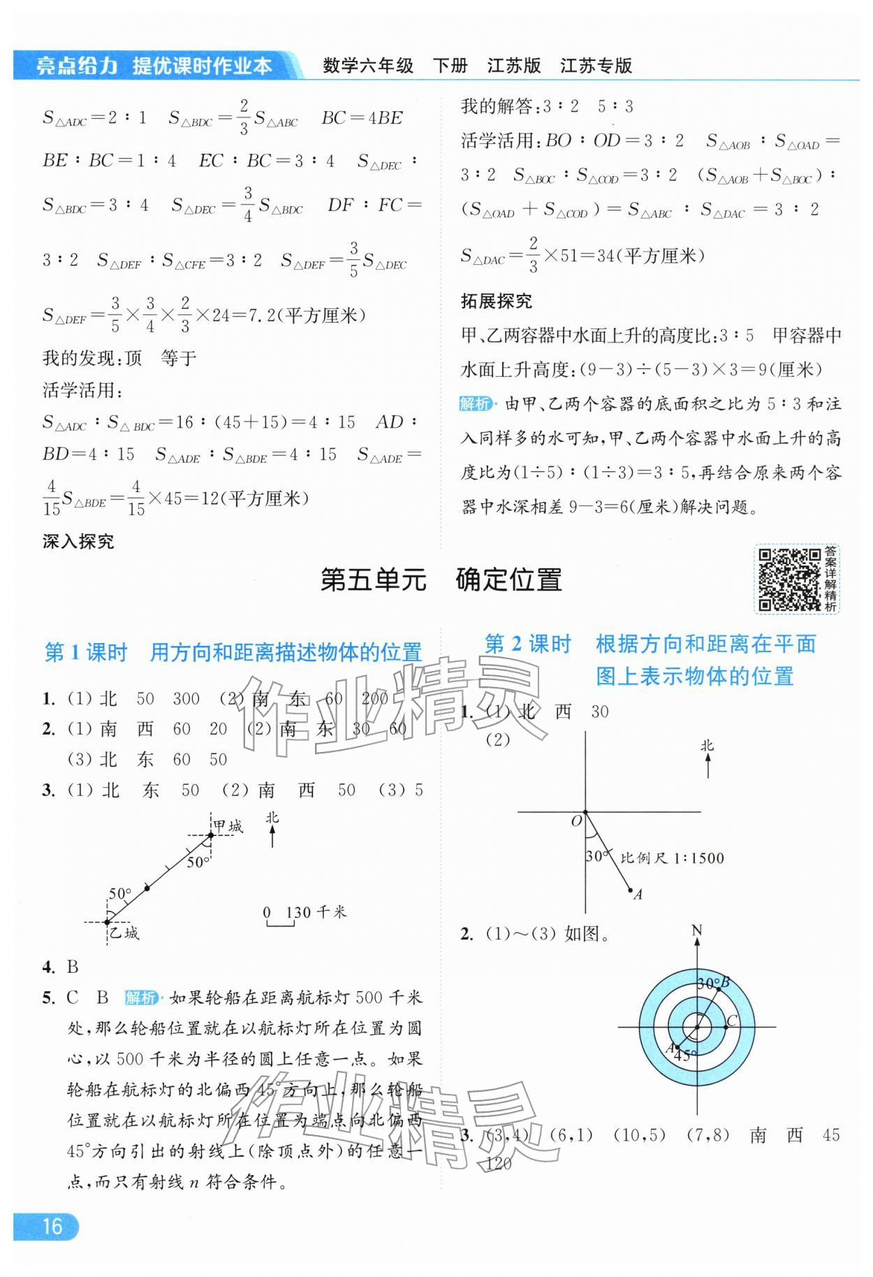2026年亮点给力提优课时作业本六年级数学下册苏教版江苏专版参考答案第16页