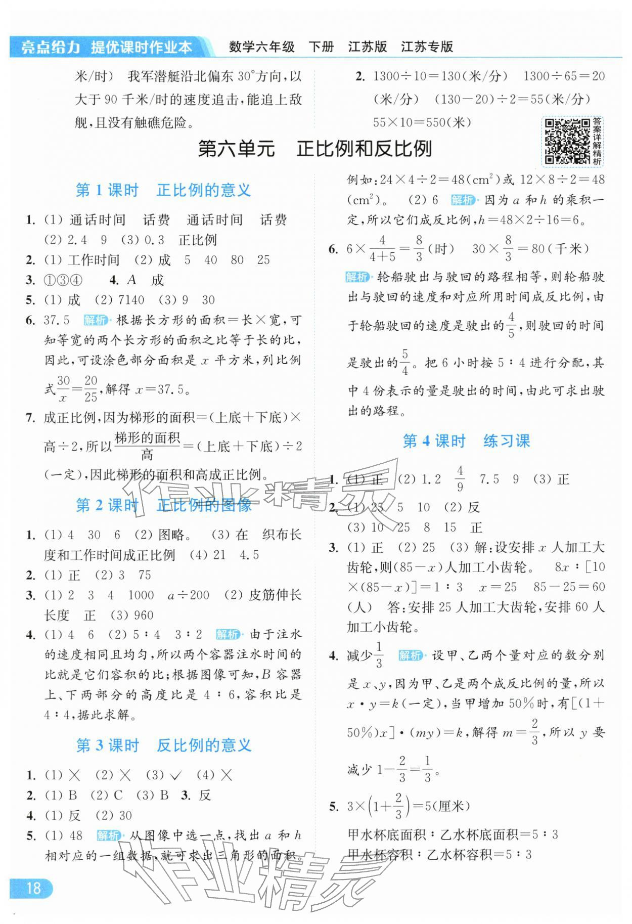 2026年亮点给力提优课时作业本六年级数学下册苏教版江苏专版参考答案第18页