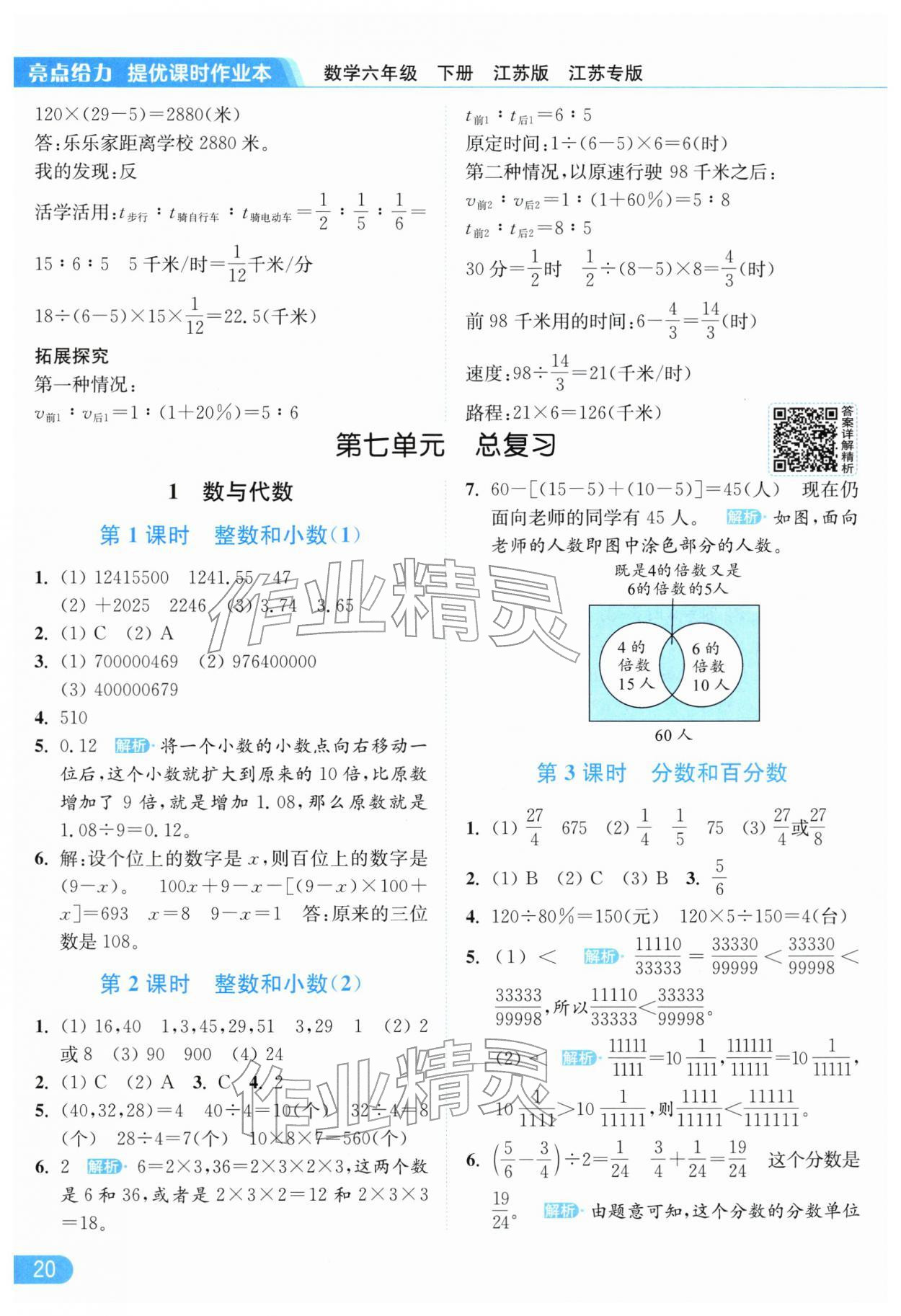 2026年亮点给力提优课时作业本六年级数学下册苏教版江苏专版参考答案第20页