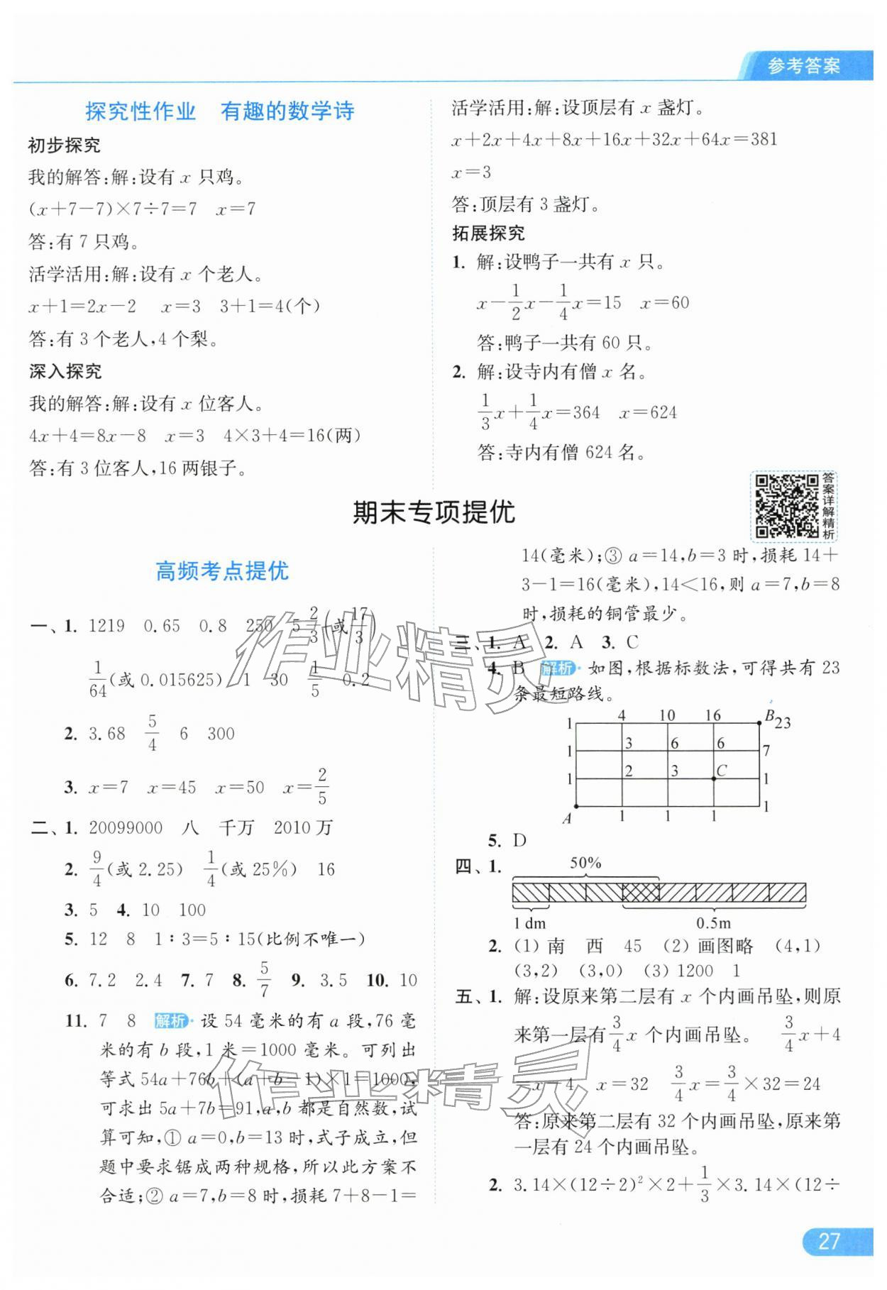 2026年亮点给力提优课时作业本六年级数学下册苏教版江苏专版参考答案第27页