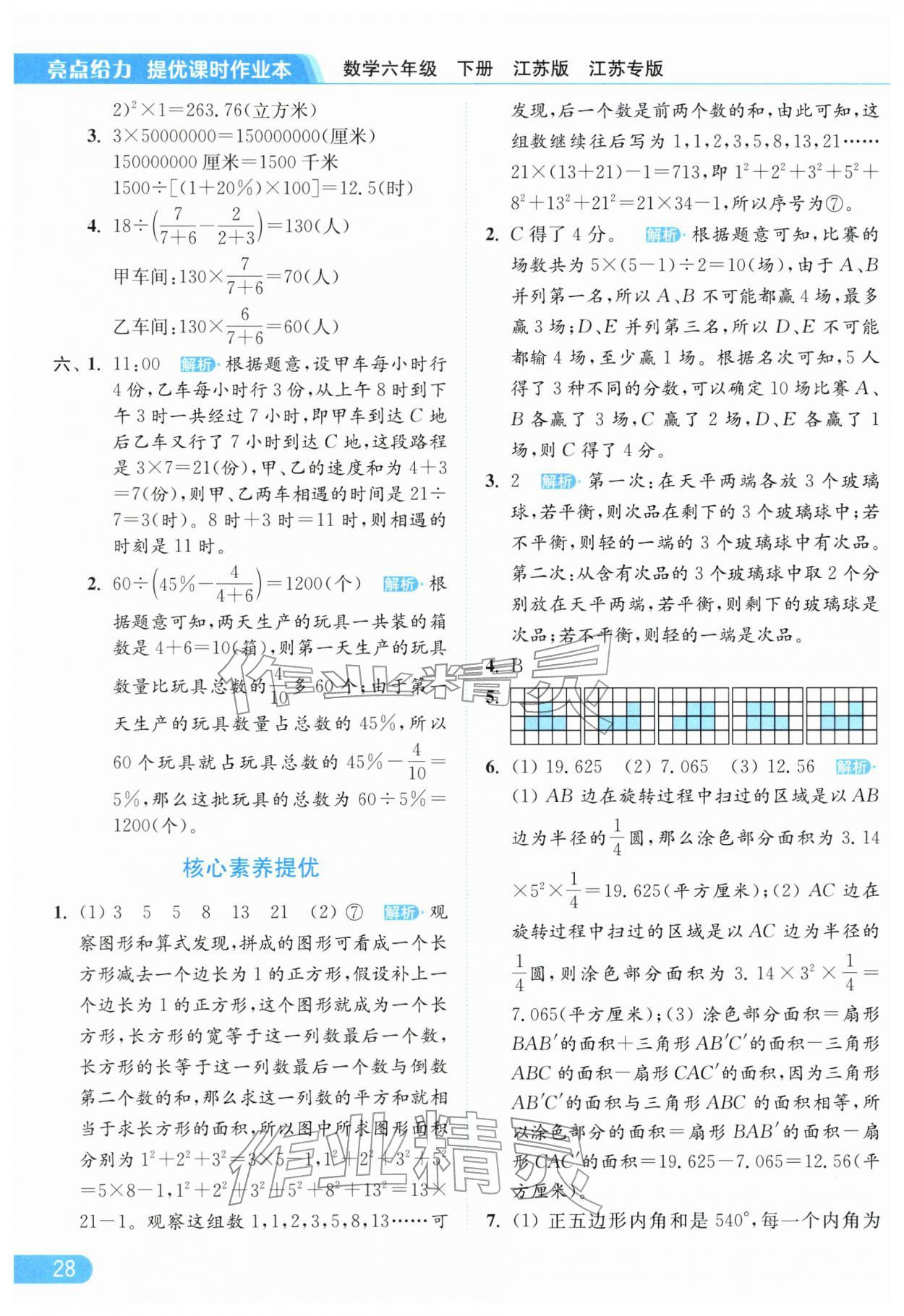 2026年亮点给力提优课时作业本六年级数学下册苏教版江苏专版参考答案第28页