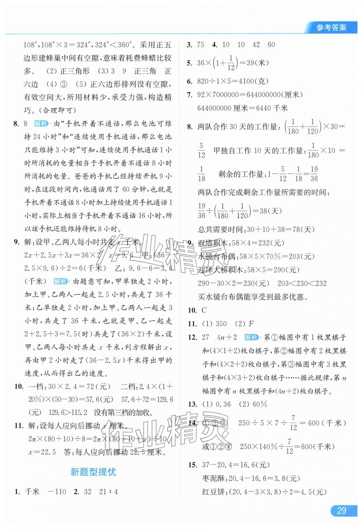 2026年亮点给力提优课时作业本六年级数学下册苏教版江苏专版参考答案第29页